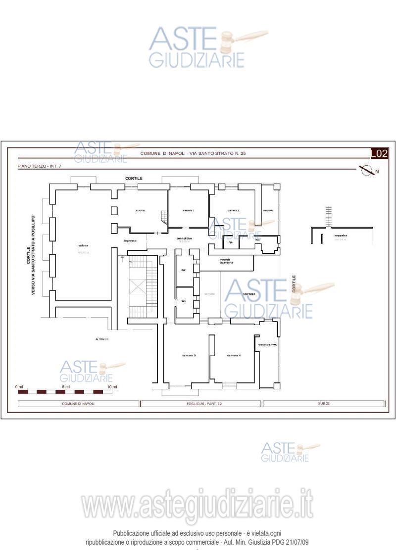 Piena ed intera proprietà di una unità abitativa posta al piano terzo (catastalmente quarto) di un fabbricato in Napoli alla via Santo Strato n. 25 e composta da ampio soggiorno, cucina abitabile, connettivo con soprastante soppalco, due camere, tre bagni, ripostiglio, due verande, ampio terrazzo a livello, oltre altri due ambienti, adibiti a camere da letto, con bagno realizzato in una ulteriore veranda. Superficie convenzionale 329 mq