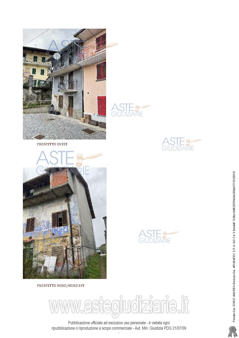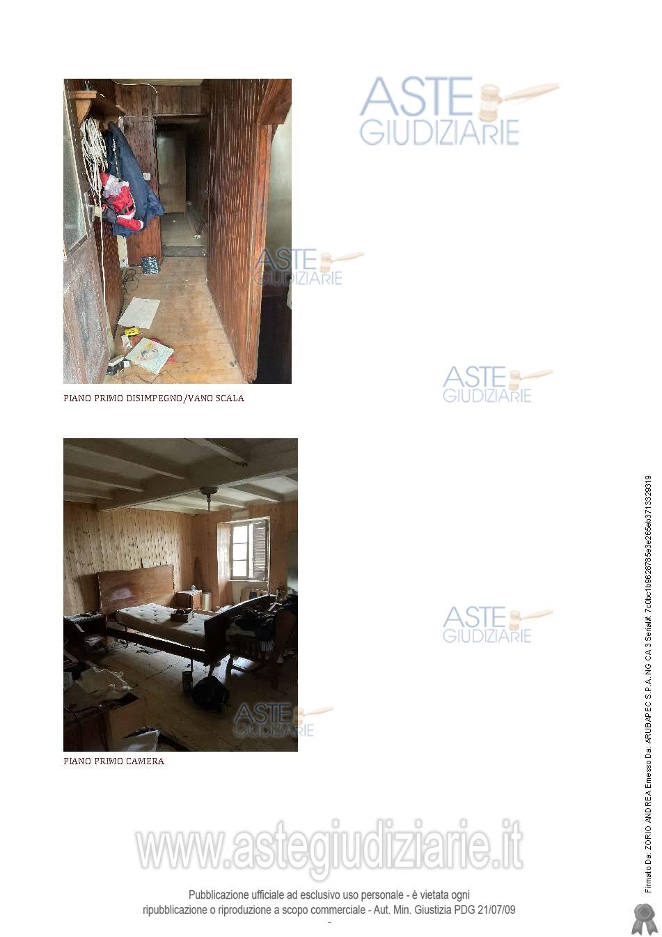 Fabbricato di civile abitazione elevato a tre piani fuori terra, così composto: al piano terreno, ingresso/vano scala, bagno e cucina/soggiorno; al piano primo camera, disimpegno, camera e due balconi; al piano secondo sottotetto al rustico. Il fabbricato si trova in un piccolo nucleo abitato e fa parte di una schiera di fabbricati di vecchia costruzione. Essendo a fine schiera è libero su tre lati. Due piccoli terreni, di cui uno adiacente e l’altro (in parte asfaltato) prospicente al fabbricato di civile abitazione di cui al punto precedente.