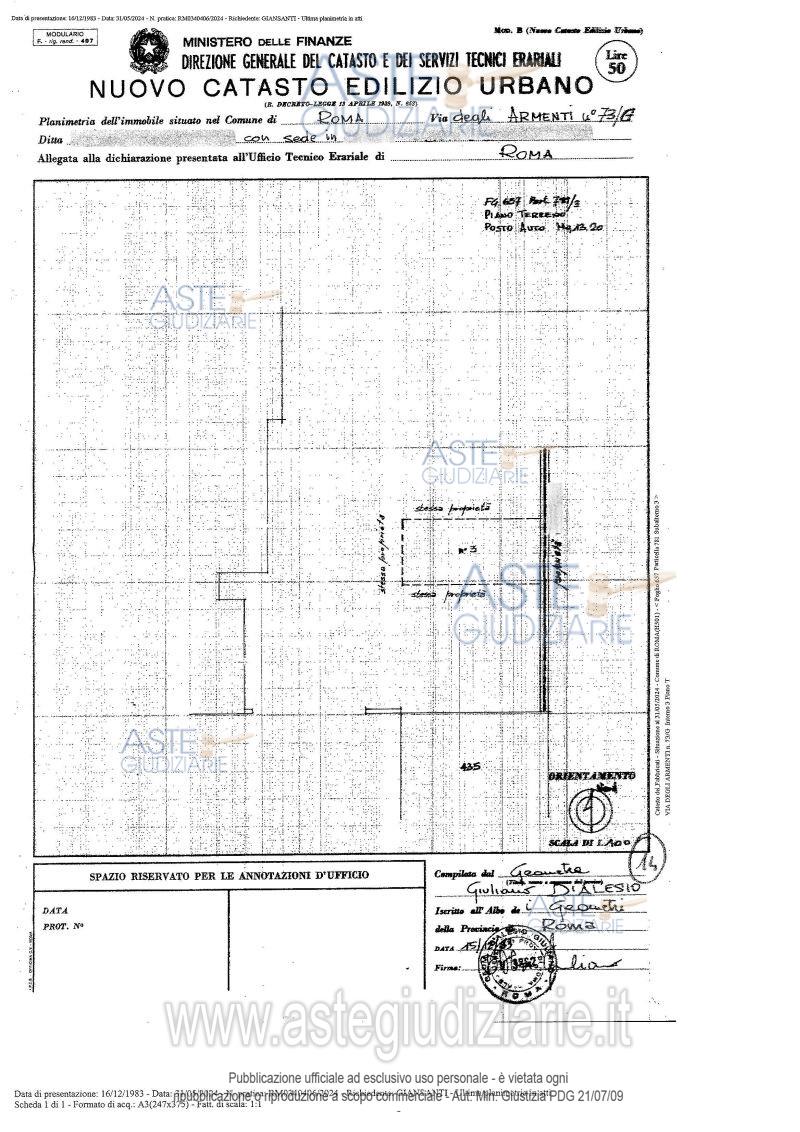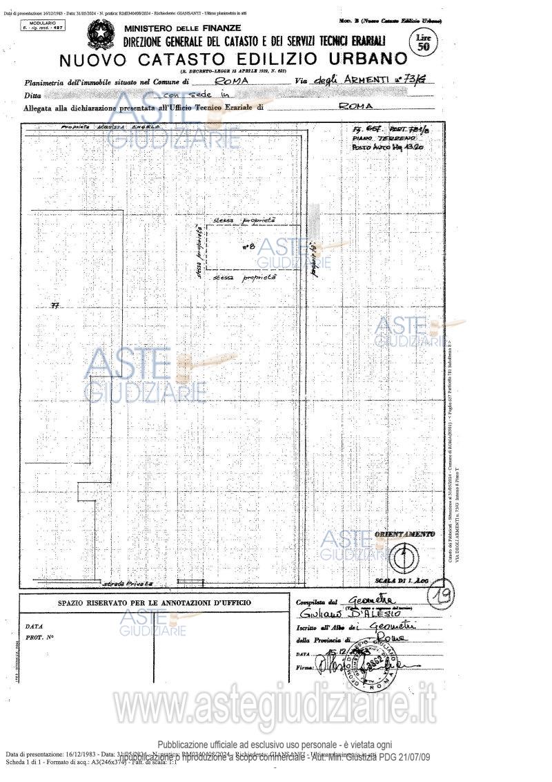 La presente scheda di vendita riporta integralmente informazioni e documenti pervenuti ufficialmente dal Ministero e dal professionista incaricato.