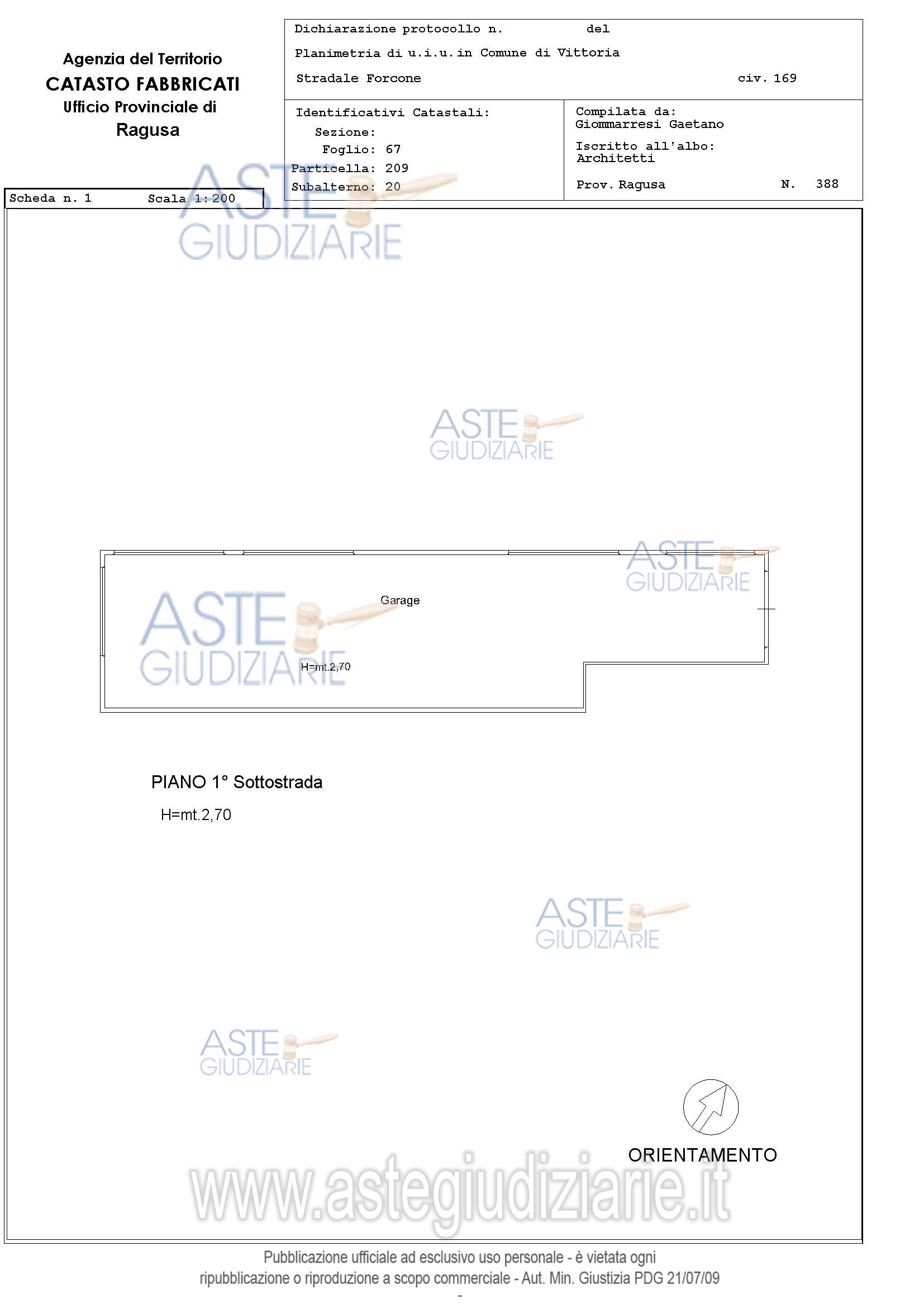 garage coperto sito al piano seminterrato di un edificio in parte destinato a locali commerciali ed artigianali ed in parte a destinazione residenziale, ubicato nella zona periferica di Vittoria in prossimità della S.S. 115 e, precisamente, in via Forcone n. 169
