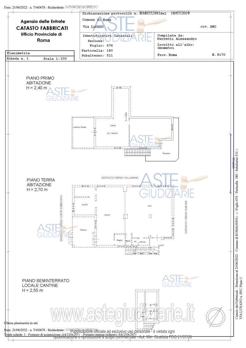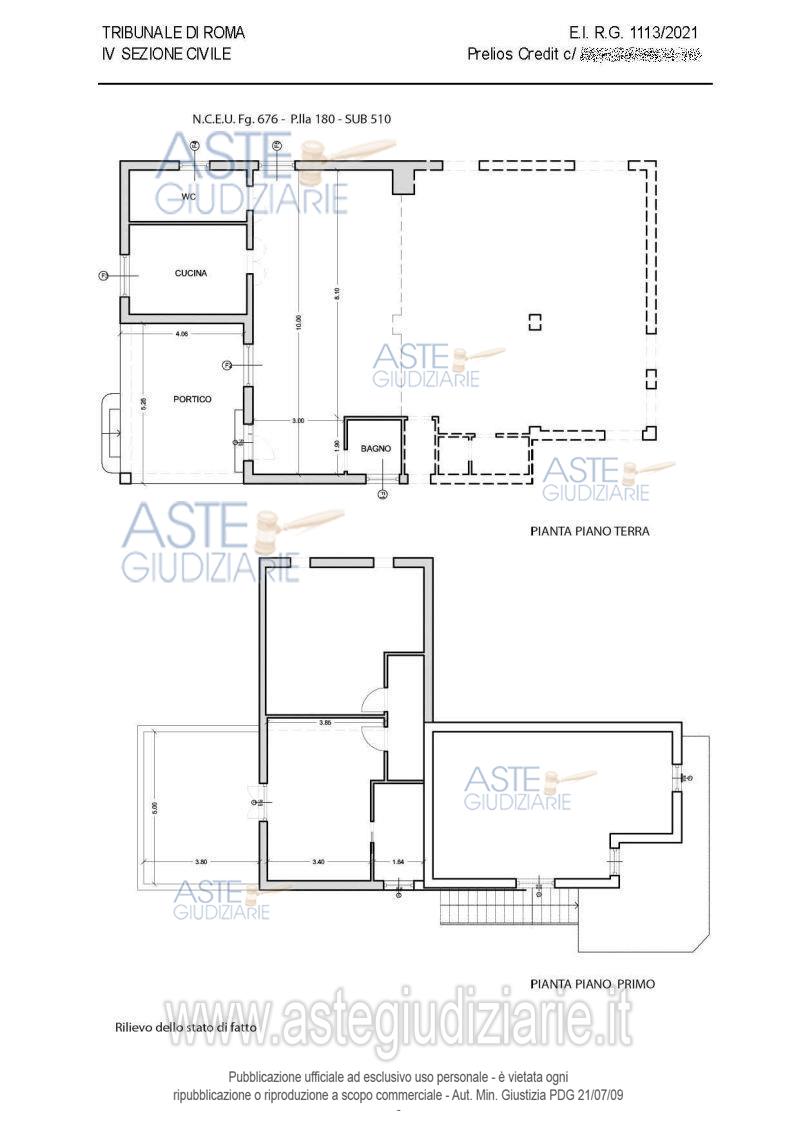 Quota pari a 100/100 del diritto di proprietà in Roma Via Lunano 20C su:-appartamento su due livelli, con al piano T piccolo portico e corte pertinenziale, ampio vano e servizi, al piano 1 sottotetto, due camere, servizi, disimpegno, balcone, al cui si accede da una scala esterna e passando dal soggiorno dell’immobile al primo piano; - appartamento posto al piano primo cui si accede da un scala esterna, costituito da un balcone a forma di "L", un vano soggiorno composto da angolo cottura e zona pranzo.