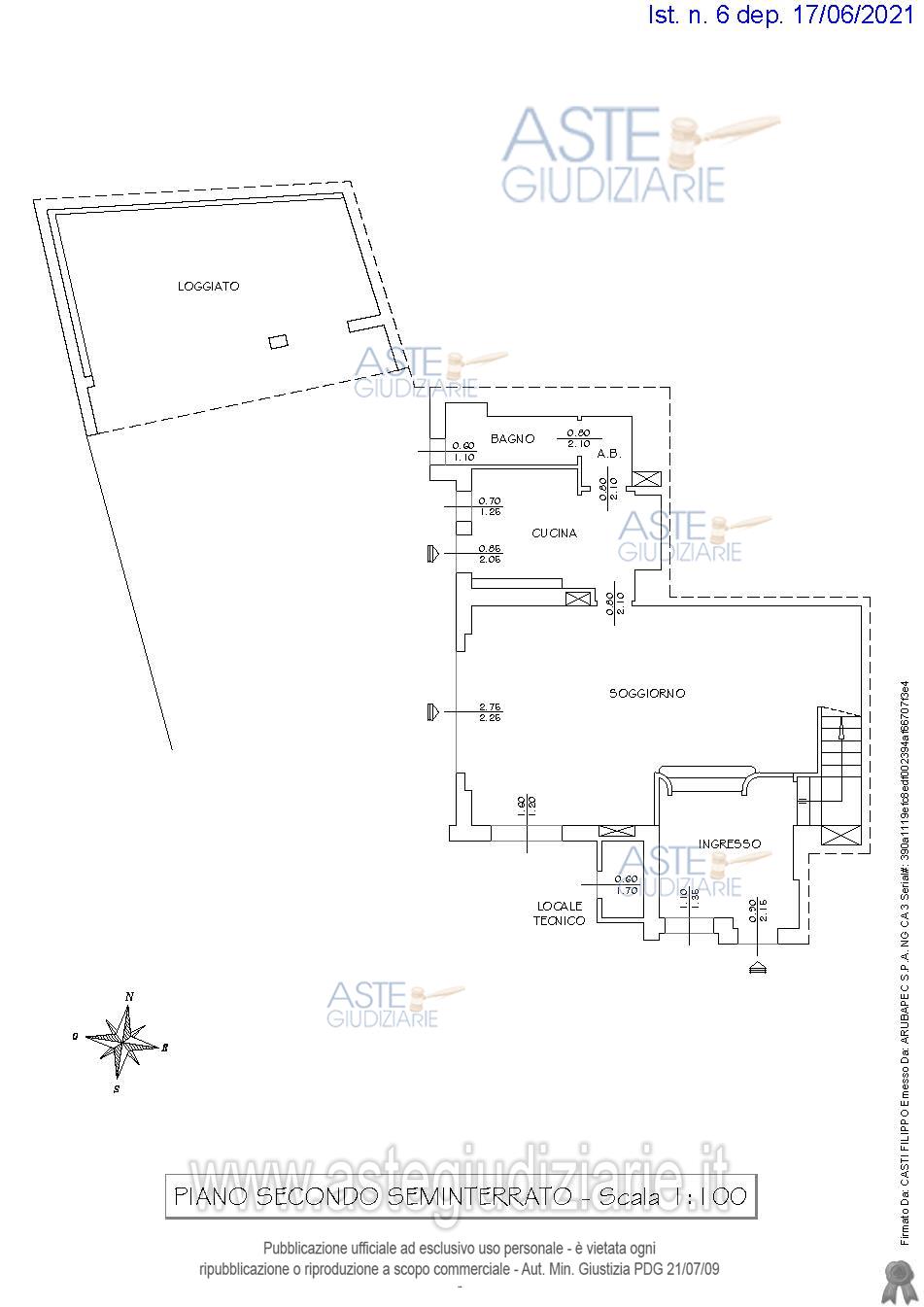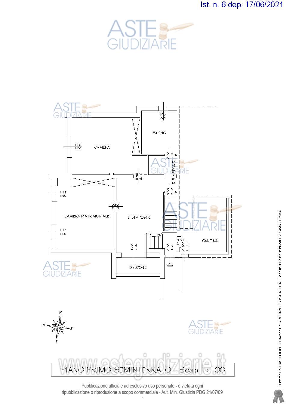 Quota pari all’intero del diritto di proprietà su appartamento ad uso residenziale su due livelli al di sotto del piano stradale facente parte del maggior fabbricato, composto al piano secondo seminterrato da ingresso, soggiorno, cucina, , antibagno, bagno di servizio; al piano primo seminterrato, comunicante con quello sottostante attraverso scala interna, due zone disimpegno, bagno, due camere. Completa la consistenza dell’immobile un’area esterna comune al sub 1.