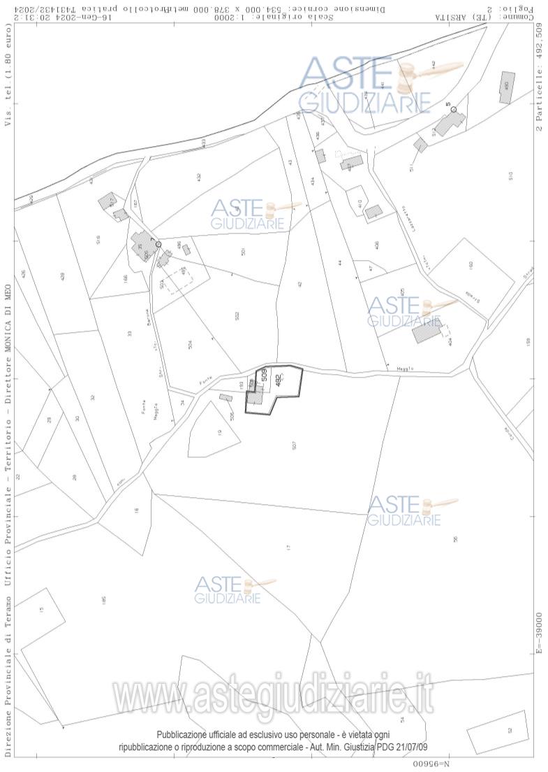 BENE 2: magazzino in piena proprietà per la quota di ½ sito in Arsita (TE) alla Contrada Fontemaggio, piano T, mq 14, Rendita € 35,43, distinto in catasto al Comune di Arsita (TE) al Fg. 2 p.lla 509 sub. 2, cat. C/2; - Ente Urbano, mq 1.70, distinto in catasto al Comune di Arsita (TE), al fg. 2, p.lla 509.