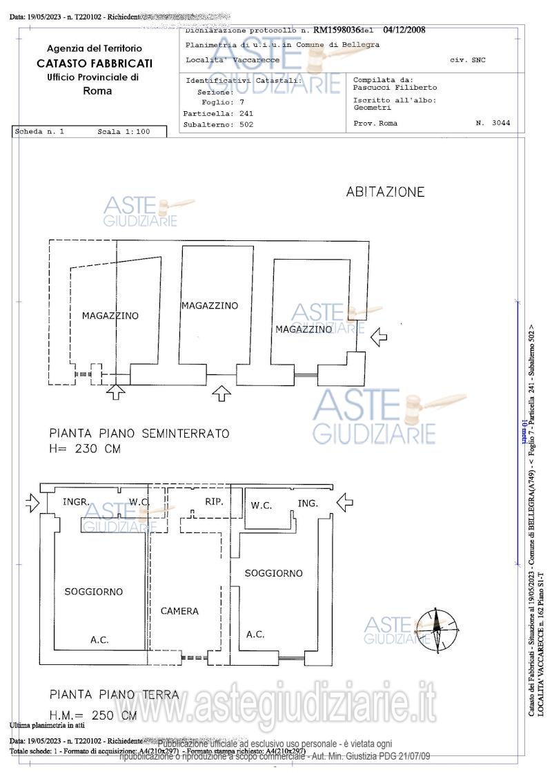 •Abitazione di tipo popolare sita in Bellegra (RM), Località Vaccarecce n.162, piano S1-T. Censito al NCEU al foglio 7, particella 241, subalterno 502 (porzione di UIU) categoria A/4, Classe 3, consistenza 4 vani, superficie catastale totale mq 107,00, rendita Euro 181,79 – seconda porzione di unità edilizia