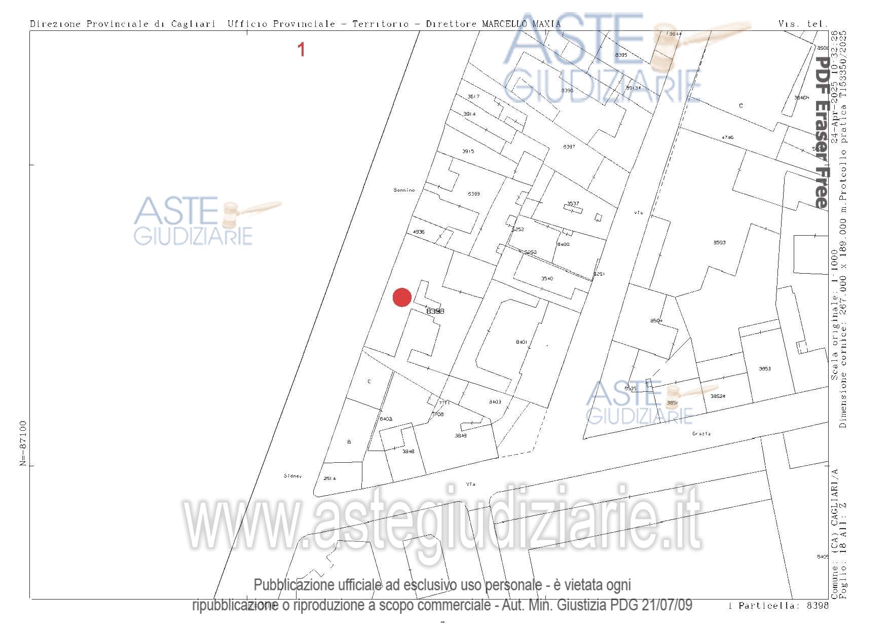 LOTTO UNICO: in Comune di Cagliari, nella Via Sidney Sonnino n. 139 al Piano 4°, quota pari a 1/1 del diritto di proprietà di un fabbricato per civile abitazione costituito da ingresso, pranzo, soggiorno, un ripostiglio, due bagni, un corridoio, tre camere da letto, una cucina, dispensa, oltre a due balconi con ripostiglio e doccia che si affacciano sul cortile interno. L’altezza interna dell’unità immobiliare è pari a m 3,00.