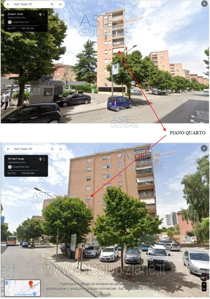 Piena proprietà di un appartamento sito a Caltanissetta, in via Filippo Turati n. 147, quarto piano, identificato in catasto al foglio 119, part. 494, sub 12, zona cens. 1, cat. A/3, classe 2, consistenza 7 vani, rendita € 341,64.