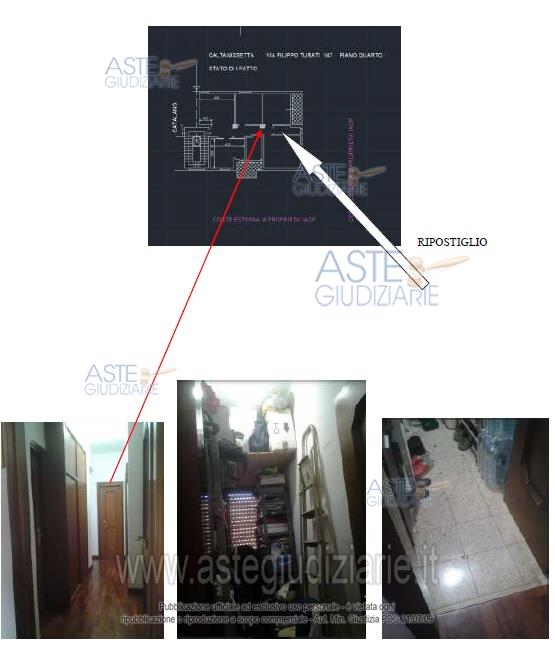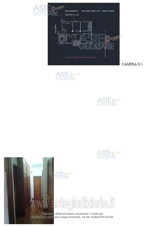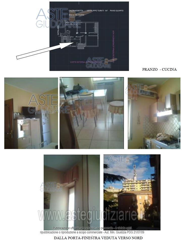 LOTTO UNICOPiena proprietà di un appartamento sito a Caltanissetta, in via Filippo Turati n. 147, quarto piano, identificato in catasto al foglio 119, part. 494, sub 12, zona cens. 1, cat. A/3, classe 2, consistenza 7 vani, rendita € 341,64.