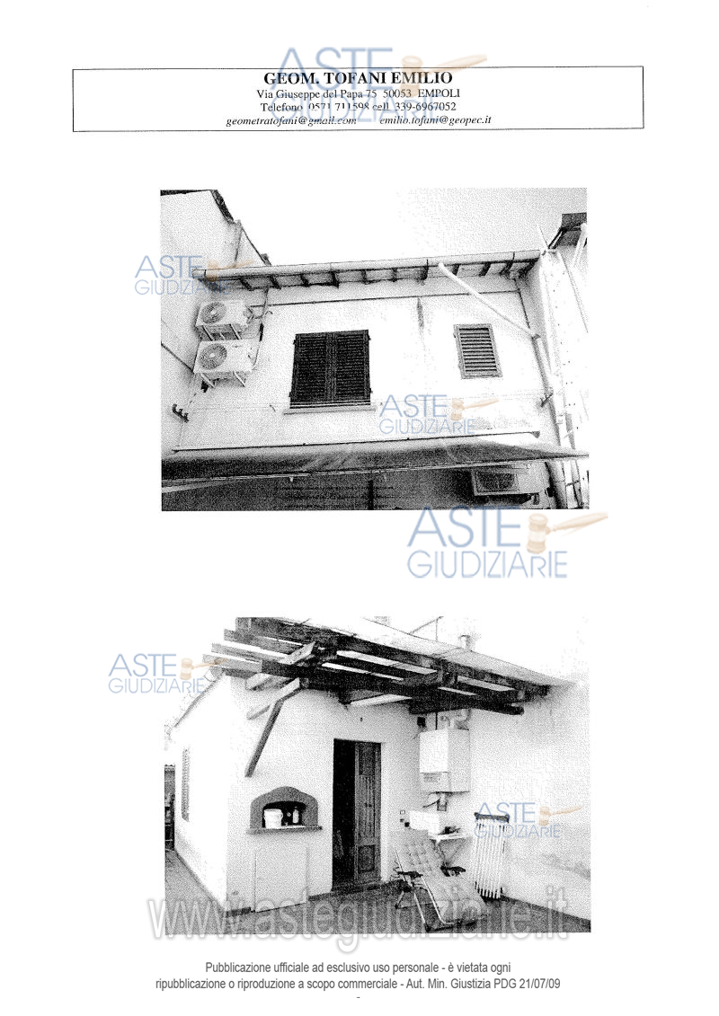 Appartamento di civile abitazione, su due piani, di vecchia costruzione, composto da 4 vani oltre accessori con annesso locale garage sul tergo, posti nel Comune di Campi Bisenzio, Via Castronella n. 70/84. L’appartamento risulta attualmente abitato dai proprietari.