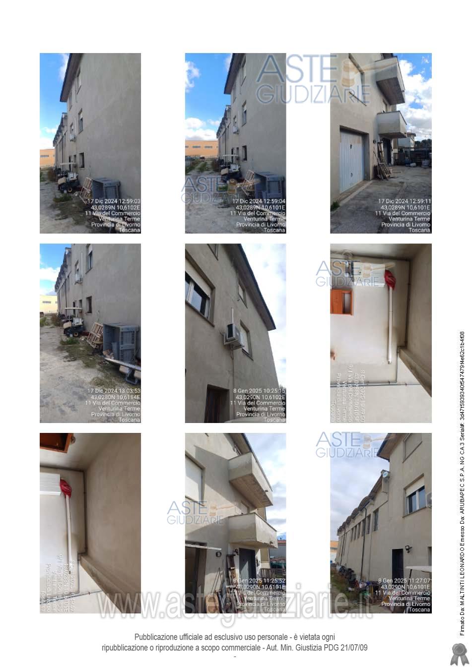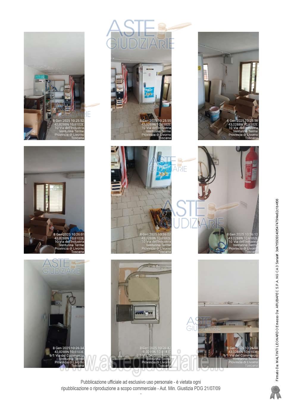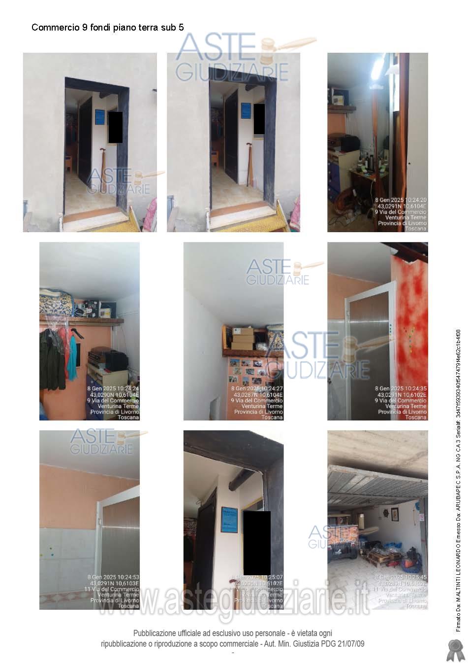 Attenzione: Non è dovuto alcun compenso (né a titolo di intermediazione, né per vedere l’immobile, né per ricevere istruzioni sulle modalità di presentazione dell’offerta, né a nessun altro titolo), se ci si rivolge a persone incaricate dal Tribunale (custode, professionista delegato, curatore, società incaricata di gestire la vendita). La pubblicità relativa a questo bene immobile, venduto dal Tribunale nella procedura indicata, potrebbe essere inserita su portali immobiliari, anche da altri soggetti non incaricati dal Tribunale. Se l’interessato all’acquisto si rivolge a questi ultimi, potrebbe essergli richiesto di pagare spese o compensi di mediazione o consulenza.