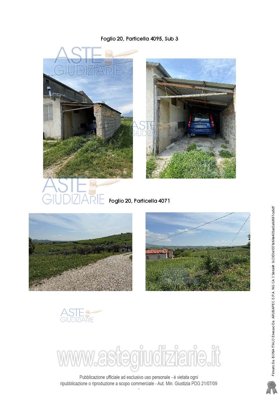 Porz AA: Qualità classe seminativo 01, sup. 22 are 34 ca, reddito dominicale: € 24,79, reddito agrario: € 8,08 Porz AB: Qualità classe uliveto 02, sup. 04 are, 31 ca, reddito dominicale: € 0,89, reddito agrario: € 0,89; 2 Totale: sup. 26 are 65 ca, redditi: Dominicale € 19,35, Agrario € 8,97; via Contrada Verratti s.n.c; Attualmente risulta Confinante con le particelle n.ri 109, 390, 406, 407, 4021, 4033, 4069, 4070, 4095; l’immobile è utilizzato e coltivato.