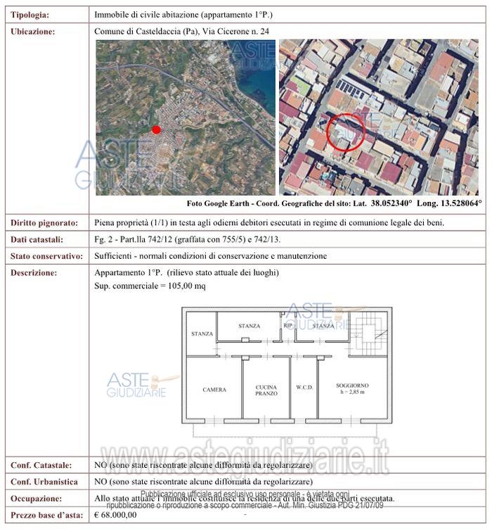 Appartamento posto al primo piano di un edificio a più piani, sito nel Comune di Casteldaccia (PA) e posto all'interno del centro abitato; ben servito.