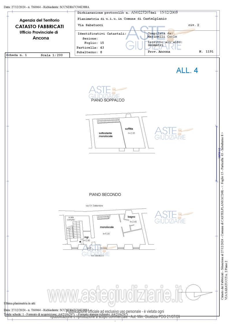 La presente scheda di vendita riporta integralmente informazioni e documenti pervenuti ufficialmente dal Ministero e dal professionista incaricato.