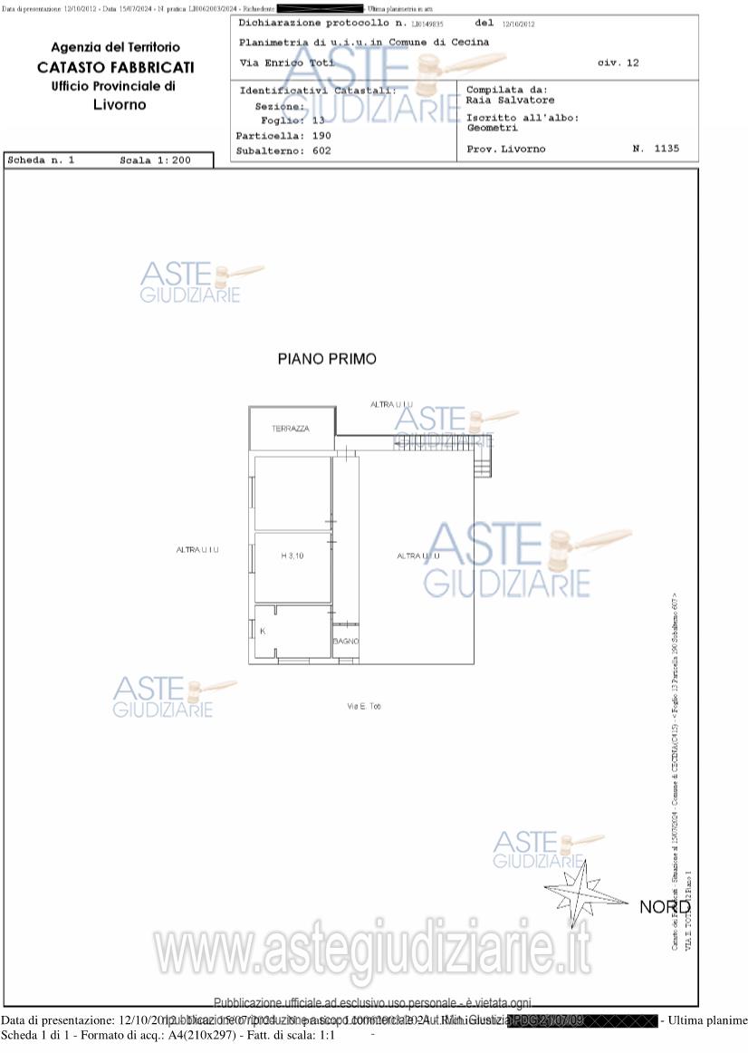Attenzione: Non è dovuto alcun compenso (né a titolo di intermediazione, né per vedere l’immobile, né per ricevere istruzioni sulle modalità di presentazione dell’offerta, né a nessun altro titolo), se ci si rivolge a persone incaricate dal Tribunale (custode, professionista delegato, curatore, società incaricata di gestire la vendita). La pubblicità relativa a questo bene immobile, venduto dal Tribunale nella procedura indicata, potrebbe essere inserita su portali immobiliari, anche da altri soggetti non incaricati dal Tribunale. Se l’interessato all’acquisto si rivolge a questi ultimi, potrebbe essergli richiesto di pagare spese o compensi di mediazione o consulenza.