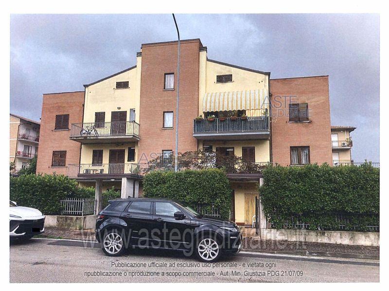 Appartamento al piano primo e garage al piano seminterrato, in un fabbricato condominiale ubicato a ridosso del centro storico, in zona pianeggiante, con presenza di parcheggi per i residenti.