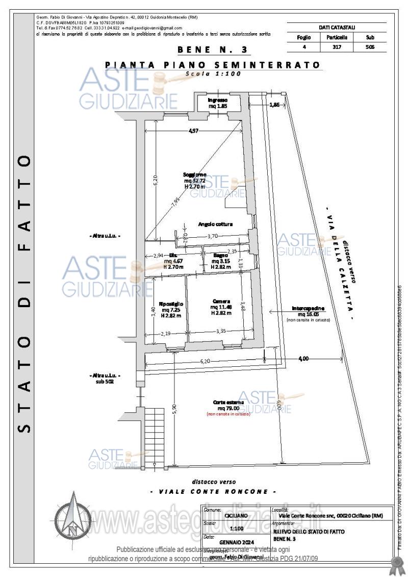 L’appartamento in oggetto, disposto su un unico livello, ha una superficie utile complessiva pari a 61,12 mq e si compone dei seguenti ambienti: ingresso, soggiorno con angolo cottura, disimpegno, bagno, camera e ripostiglio Non sussiste corrispondenza catastale Vi è inoltre un deposito formato da un vano di forma rettangolare di superficie utile 18,00 mq, privo di qualsivoglia finitura e di impianti, nonchè magazzino con superficie utile 32,84 mq e composto da due vani. Negozio di superficie utile mq 47,39 con annesso servizio igienico di 2,25 mq Il lotto non corrisponde alle risultanze catastali