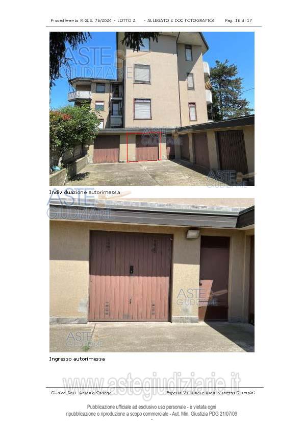 Unità abitativa, al piano secondo, ingresso da atrio condominiale, accesso tramite porta in alluminio vetrata. L’immobile è privo di ascensore, si accede ai piani tramite scala condominiale. Ingresso all’unità abitativa avviene tramite portoncino blindato in legno, si accede al locale giorno e da qui alla cucina, allo studio e al disimpegno, dal disimpegno si accede a due camere e al bagno. La zona giorno è dotata di due finestre esposte a Sud e ad Est e di una porta finestra con affaccio su balcone esposto a Sud/Est. La cucina è dotata di porta finestre affacciata su piccolo balcone esposto a Ovest verso area condominiale. Lo studio è dotato di finestra esposta ad Ovest e di porta finestra affacciata su balcone esposto a Nord/Ovest Dalla zona giorno si accede al disimpegno cieco, da qui si accede al bagno dotato di finestra esposta a Nord e a due camere, una dotata di portafinestra affacciata verso balcone esposto a Nord/Est e l’altra dotata di finestra esposta a Est. Altezza dei locali 2,97 mt. Cantina, al piano seminterrato: vano di altezza 2,37 mt., il locale è privo di finestre. Al locale cantina si accede da corridoio condominiale. Autorimessa, l’accesso alle autorimesse avviene da Via G. Mazzini n.2, non è stato possibile accedere al locale per la mancanza delle chiavi. Vedere prospetto delle superfici alle pagine 12/13 della perizia.