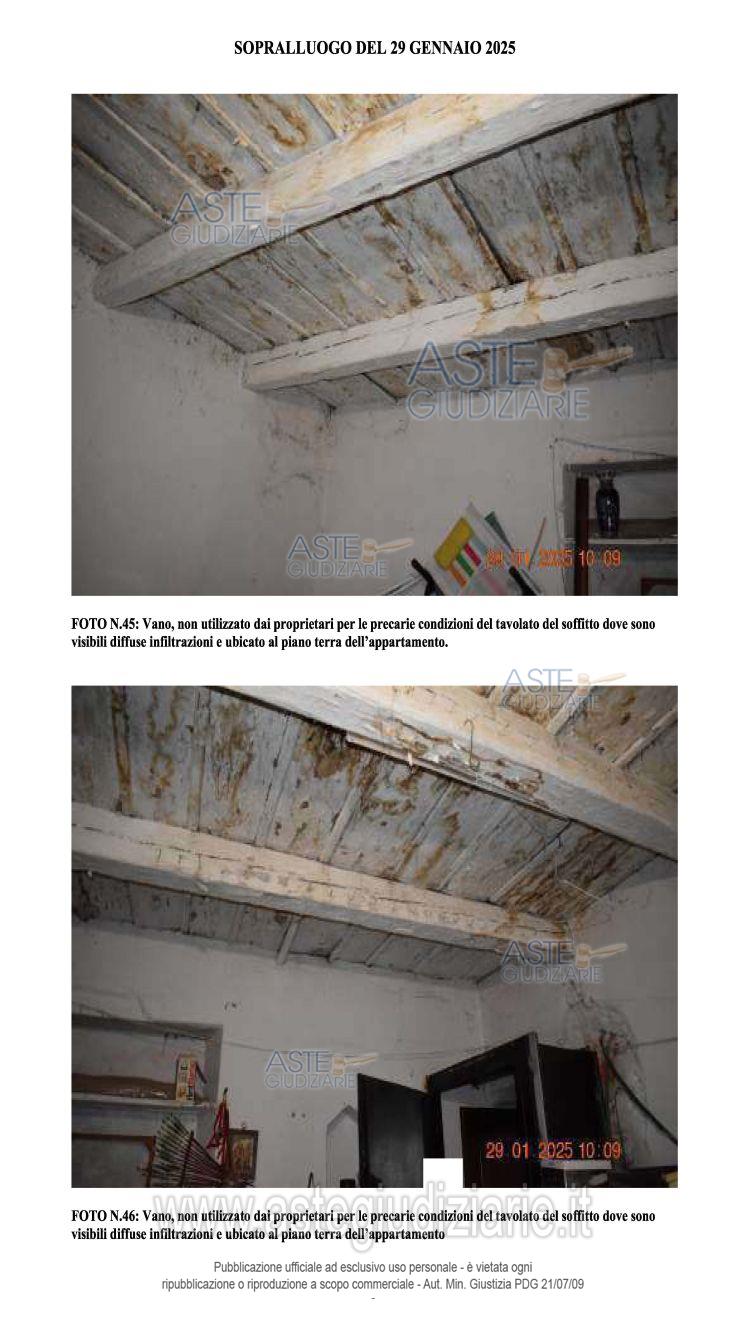 Appartamento al piano terra destinato ad abitazione, della superficie commerciale di mq. 168 circa, composta da due camere da letto, soggiorno, cucina, deposito, corridoio, bagno, disimpegno, balcone e veranda, oltre soffitta non praticabile al primo piano di mq. 59,90 circa (non calpestabili) e cantina al piano sottostrada con ingresso posto sul retro del fabbricato principale composta da un vano di superficie lorda di mq. 46,60 circa,