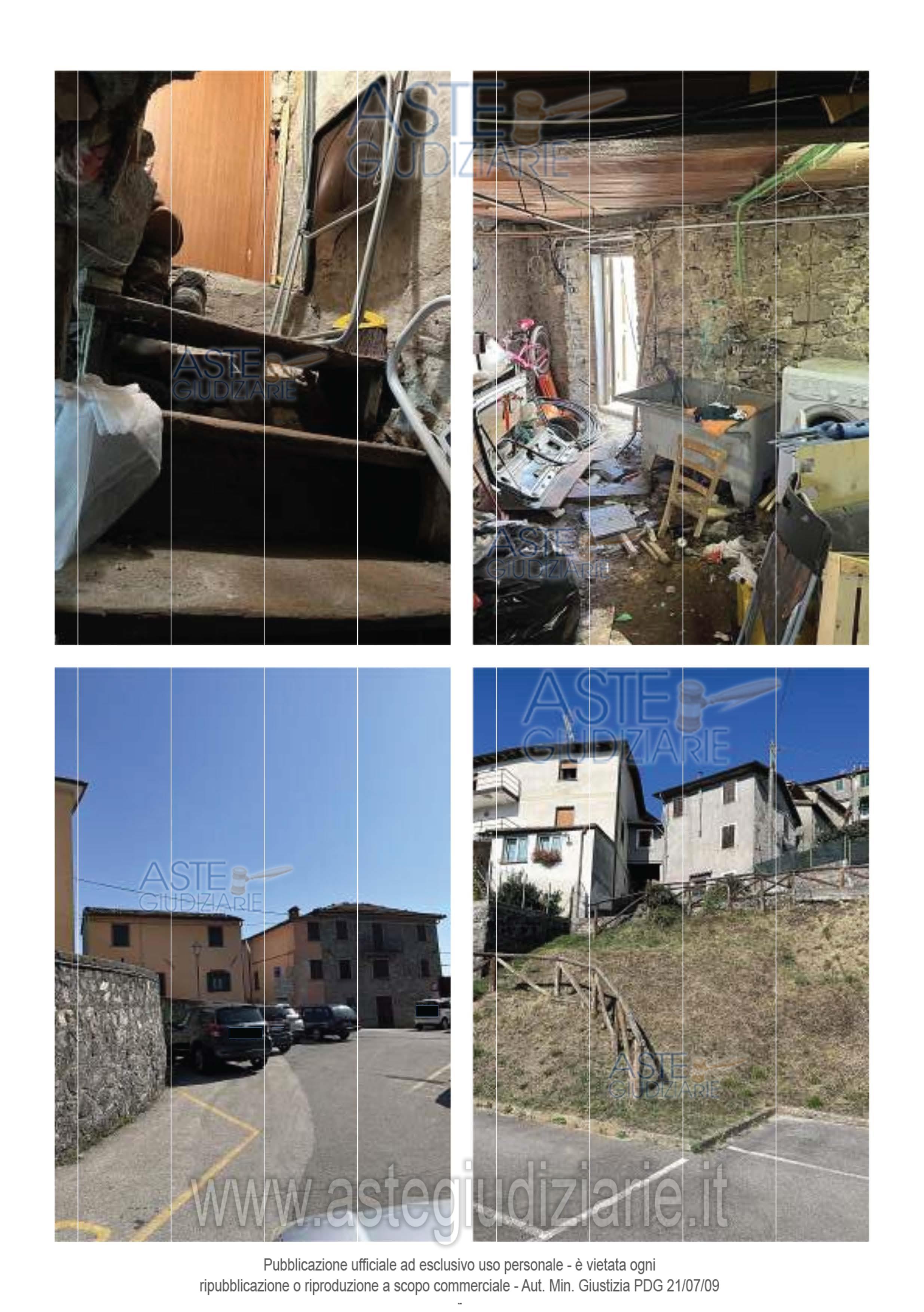 Abitazione in porzione di fabbricato a schiera con altri simili del centro storico di Vergemoli, in zona non accessibile con automezzi. Dislocata in terreno declive su tre piani, compreso il seminterrato, collegati da scala interna. Al seminterrato si trova un vano cantina di altezza media di circa m. 2,00 con accesso diretto dalla pubblica via; al piano terreno di altezza circa m. 2,40 da un unico vano di ingresso-soggiorno con zona cottura con accesso dalla pubblica via tramite terrazza parzialmente coperta da pensilina; al piano primo di altezza circa m. 2,10 da una cameretta ed un bagno. Sono presenti notevoli efflorescenze di umidità risalente nelle zone alla base della muratura interna ed esterna nonché infiltrazioni di acqua piovana dalla copertura, specie in corrispondenza della conversa del camino. Il tetto ha struttura in legno e necessita di interventi di manutenzione straordinaria.