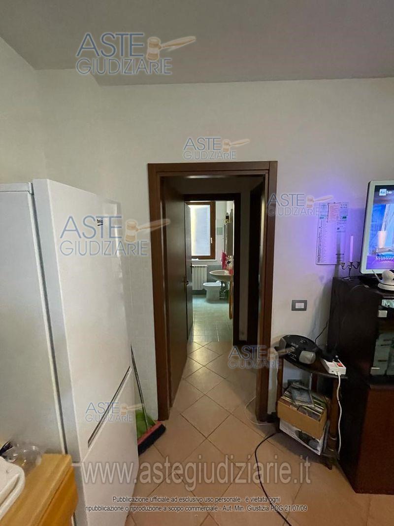 Lotto 3 Piena proprietà (1/1) di porzione di fabbricato sito a Fabriano (An) in via Carlo Urbani n° 13 (interno 3), composta da un appartamento sito al piano terra costituito da cucina/soggiorno dal quale si accede alla corte esclusiva, camera matrimoniale, disimpegno e bagno, oltre cantina