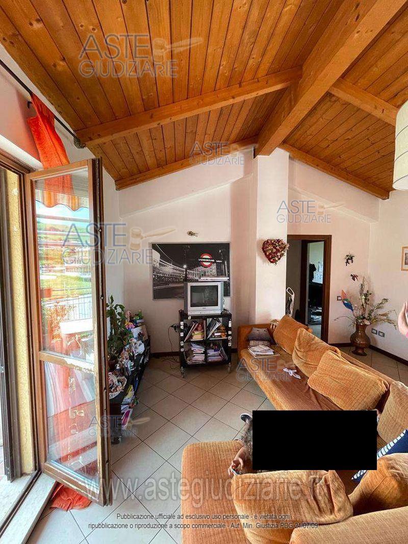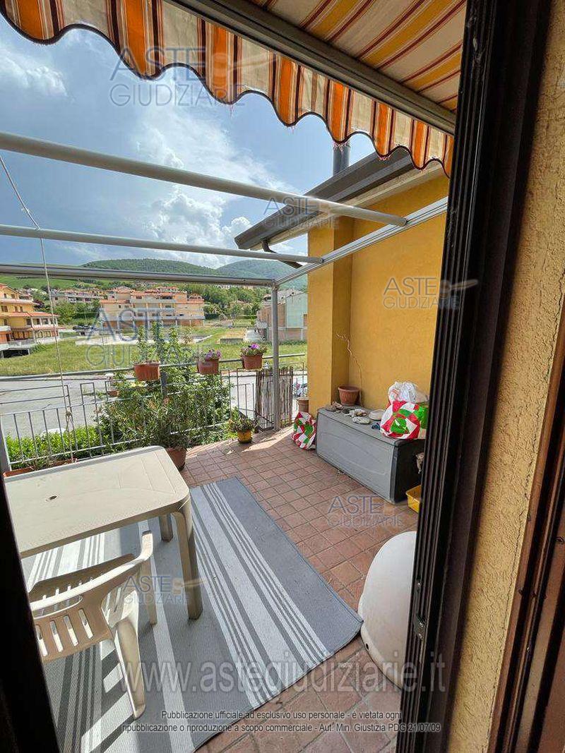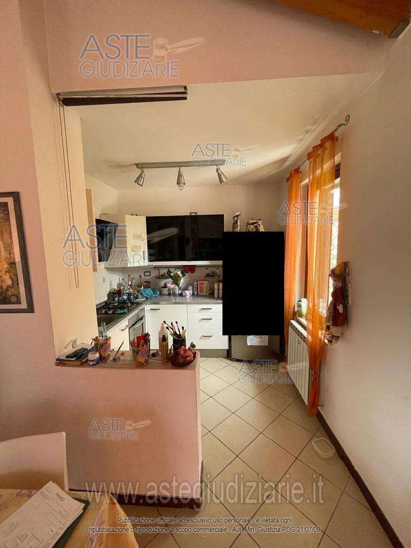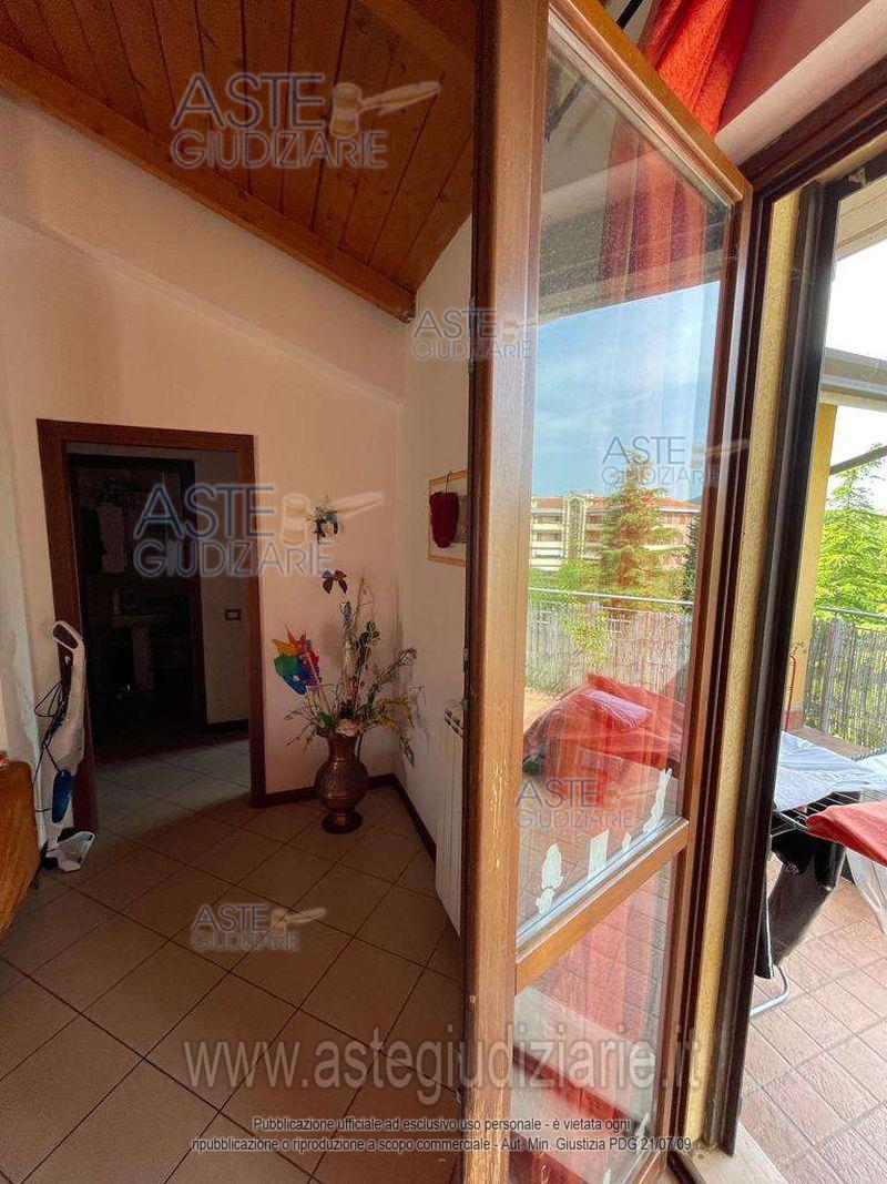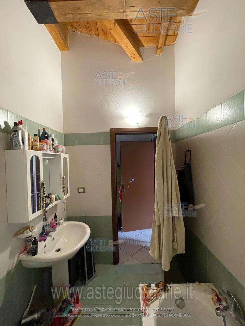 Lotto 25Piena proprietà (1/1) di porzione di fabbricato sito a Fabriano (An) in via Carlo Urbani n° 13(interno 8), composta da un appartamento sito al piano secondo costituito dacucina/soggiorno dal quale è possibile accedere a due lastrici solari di proprietà esclusiva,contrapposti per orientamento, due camere, disimpegno e due bagni, oltre cantina e postoauto al piano interrato.