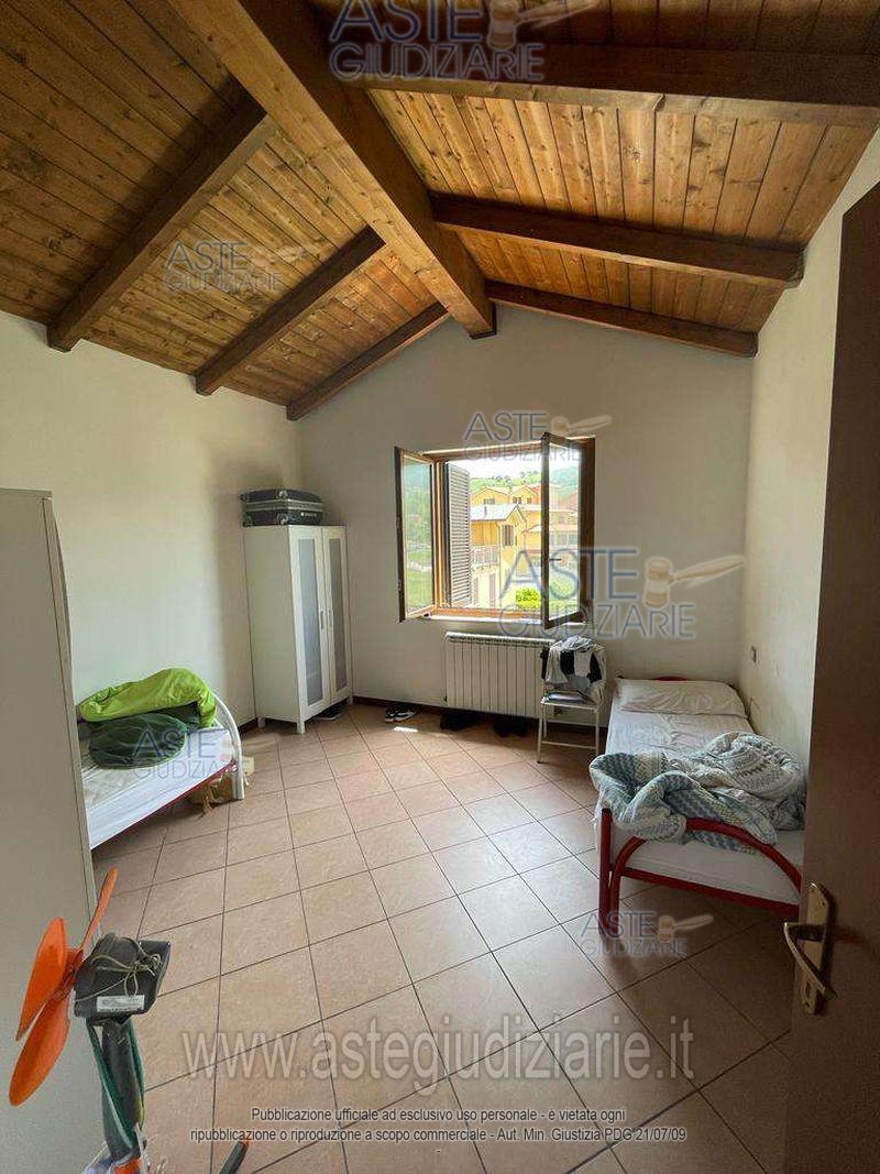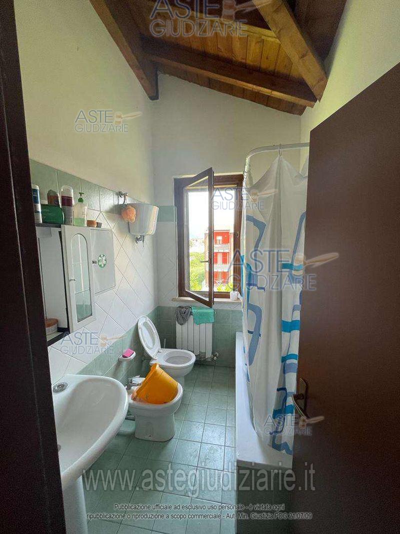 Lotto 26Piena proprietà (1/1) di porzione di fabbricato sito a Fabriano (An) in via Carlo Urbani n° 13 (interno 9), composta da un appartamento sito al piano secondo costituito dacucina/soggiorno dal quale è possibile accedere a due lastrici solari di proprietà esclusiva,contrapposti per orientamento, due camere, disimpegno e due bagni, oltre cantina e dueposti auto al piano interrato.