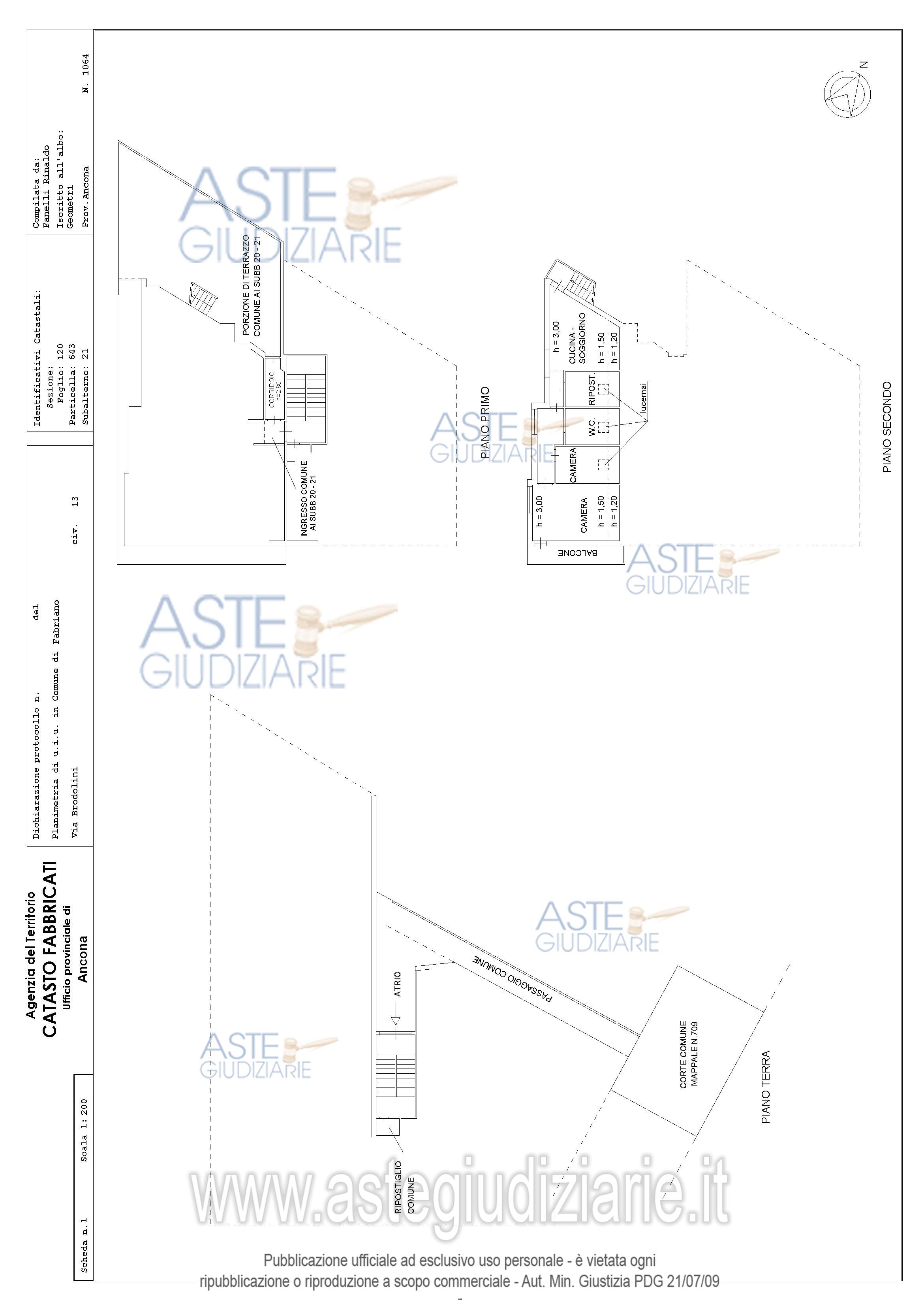 Appartamento posto al piano primo e secondo, composto da soggiorno e cucina abitabile, un disimpegno che conduce alla zona notte, composta da 3 camere, 2 bagni ed un ripostiglio al piano primo, e soggiorno e cucina, ripostiglio, due camere, bagno e terrazzi al piano secondo.