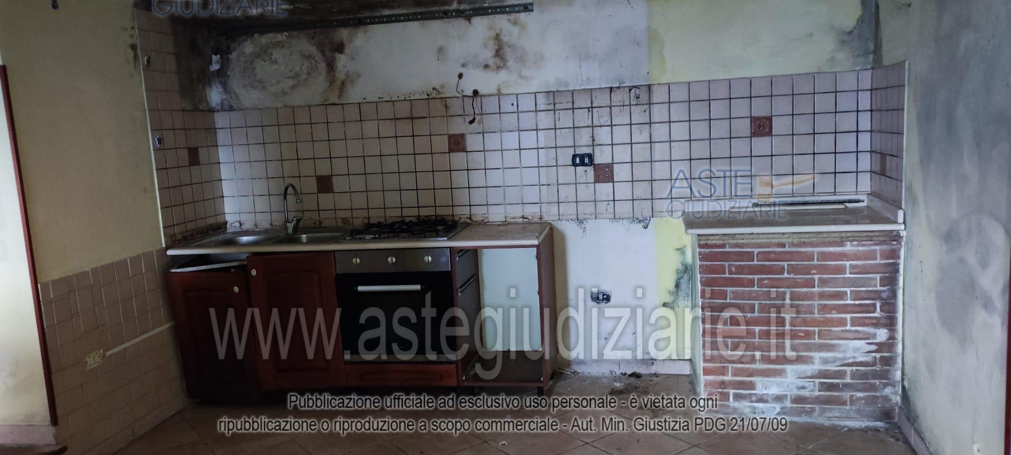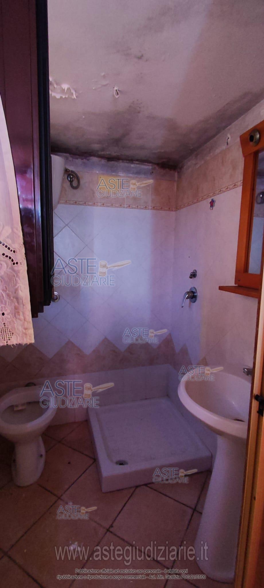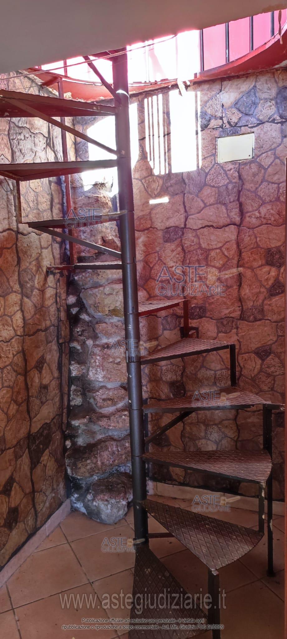 Intera piena proprietà di Fabbricato adibito a civile abitazione su due livelli, piano seminterrato e piano terra, con accesso autonomo dalla strada comunale attraverso una corte esclusiva recintata e chiusa con cancello carrabile. Al piano seminterrato è presente soggiorno ingresso, angolo cottura e bagno; al piano superiore accessibile attraverso una scala a chiocciola metallica sono presenti due camere, disimpegno, bagno e terrazzo. Le altezze dei locali al piano seminterrato sono inferiori a quelle regolamentari mentre al piano superiore la copertura a falde determina altezza variabile dei vani. Sulle finiture appaiono evidenti ammaloramenti dovuti a umidità. Posto in posizione semicentrale nel centro cittadino in vicinanza di servizi e aree di parcheggio pubblico raggiungibili anche a piedi. L’immobile presenta abusi non sanabili