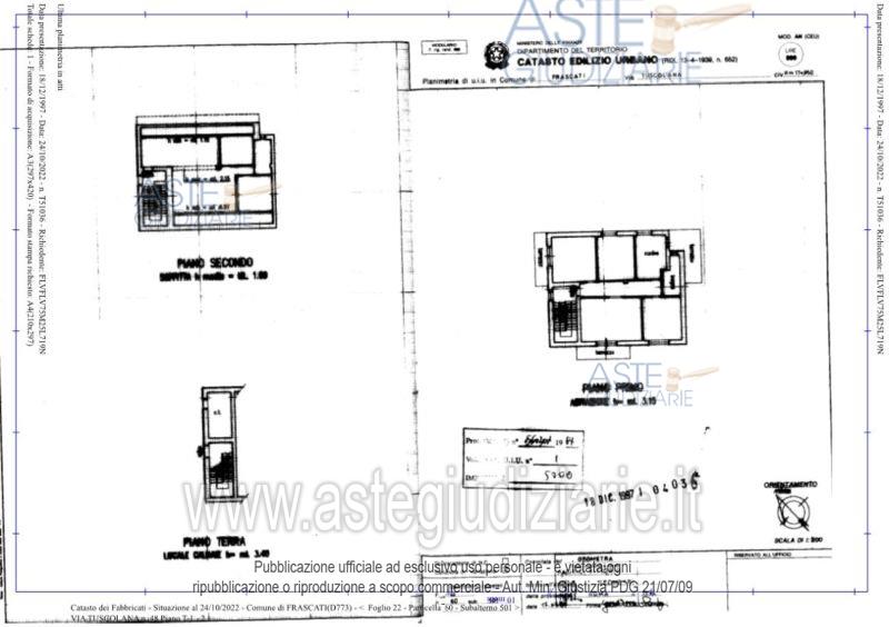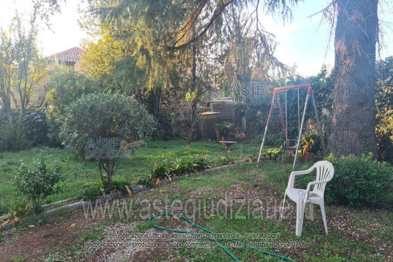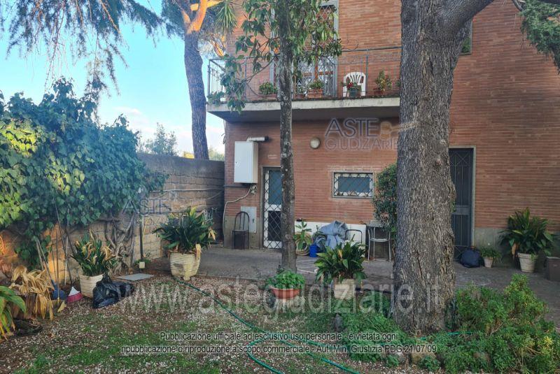 Villetta in Via Tuscolana n. 48 a Frascati (RM), facente parte di un fabbricato di maggior consistenza e così composta: giardino ad uso esclusivo, piccola cantina e ingresso con vano scala al piano terra; ingresso, soggiorno, tre camere, cucina, un bagno, due balconi ed un terrazzo al piano primo; soffitta al piano secondo. Si accede all'immobile attraverso un cancello carrabile e pedonale da area esterna adiacente, adibita a passaggio e posti auto per le attività poste al piano terra del fabbricato.