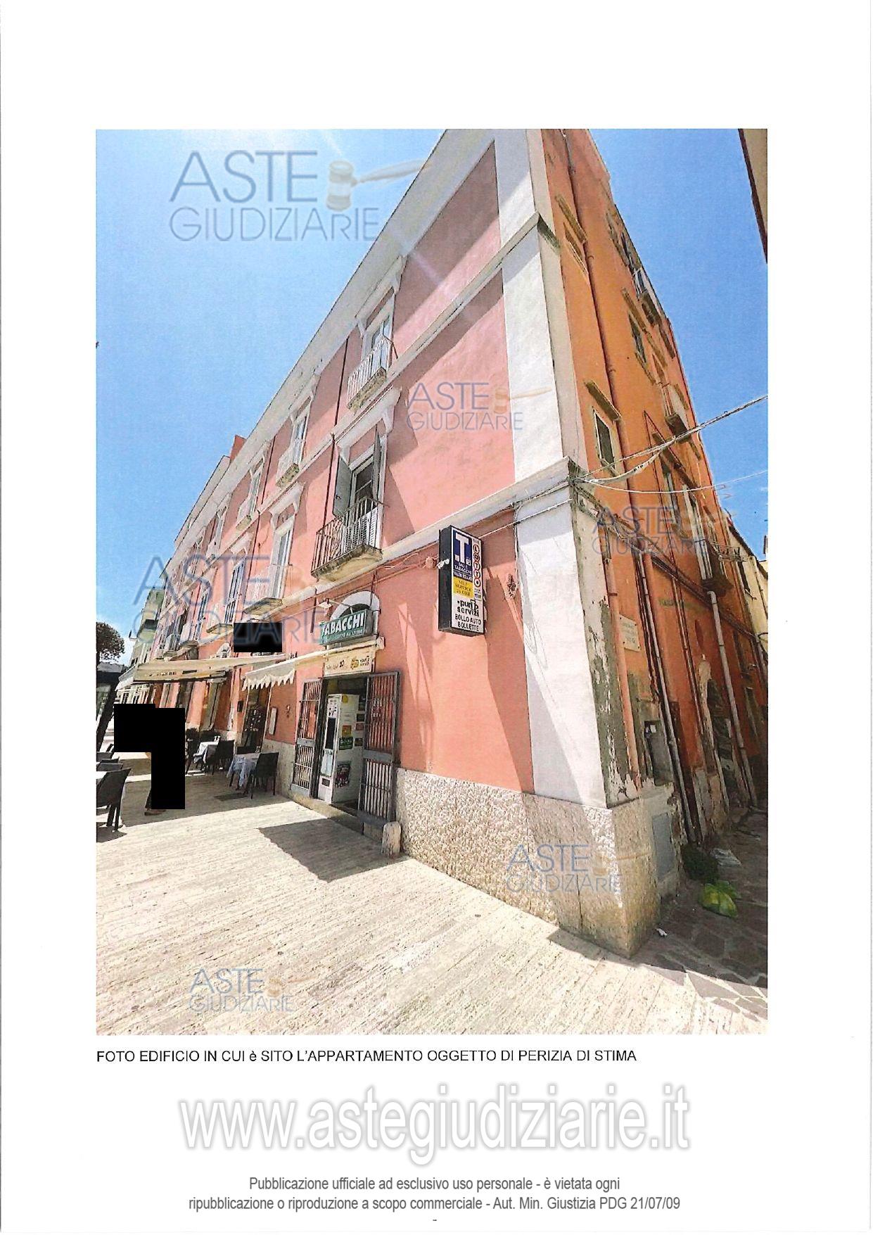 L'appartamento è situato al piano primo di un immobile di maggiore consistenza sito in Gaeta (LT), sul lungomare Caboto, angolo Vicolo XX, via sulla quale è posto il portoncino di accesso al vano scala condominiale, dotato anche di un soppalco calpestabile, per una superficie utile complessiva, comprensiva di accessori, pari a circa 102 mq; un soggiorno, una cucina, due camere, un ripostiglio . Completa l'appartamento un terrazzo ad uso esclusivo in cui è stato ricavato un secondo ripostiglio.