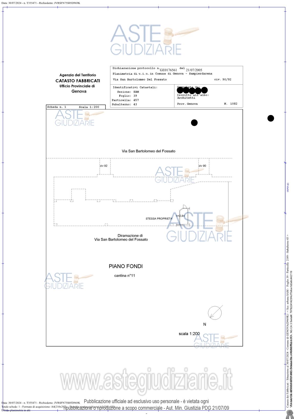 Bene 2: cantina di 5,34 mq ubicata in Genova, via San Bartolomeo del Fossato 90/92, al secondo piano sottostrada, accessibile direttamente dall’esterno.
