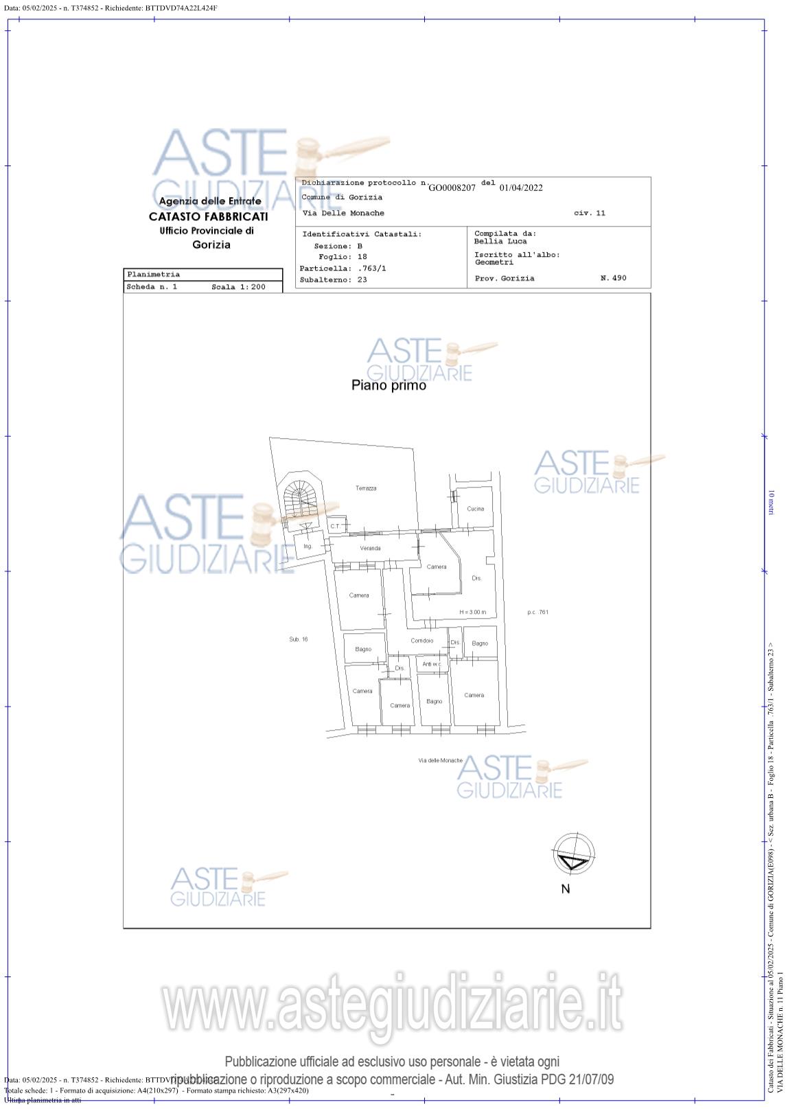 Appartamento della superficie commerciale di 166,63 mq sito al primo piano e composto da: ingresso, veranda, centrale termica, terrazza, corridoio, tre disimpegni, cucina, anti w.c., tre bagni e cinque camere