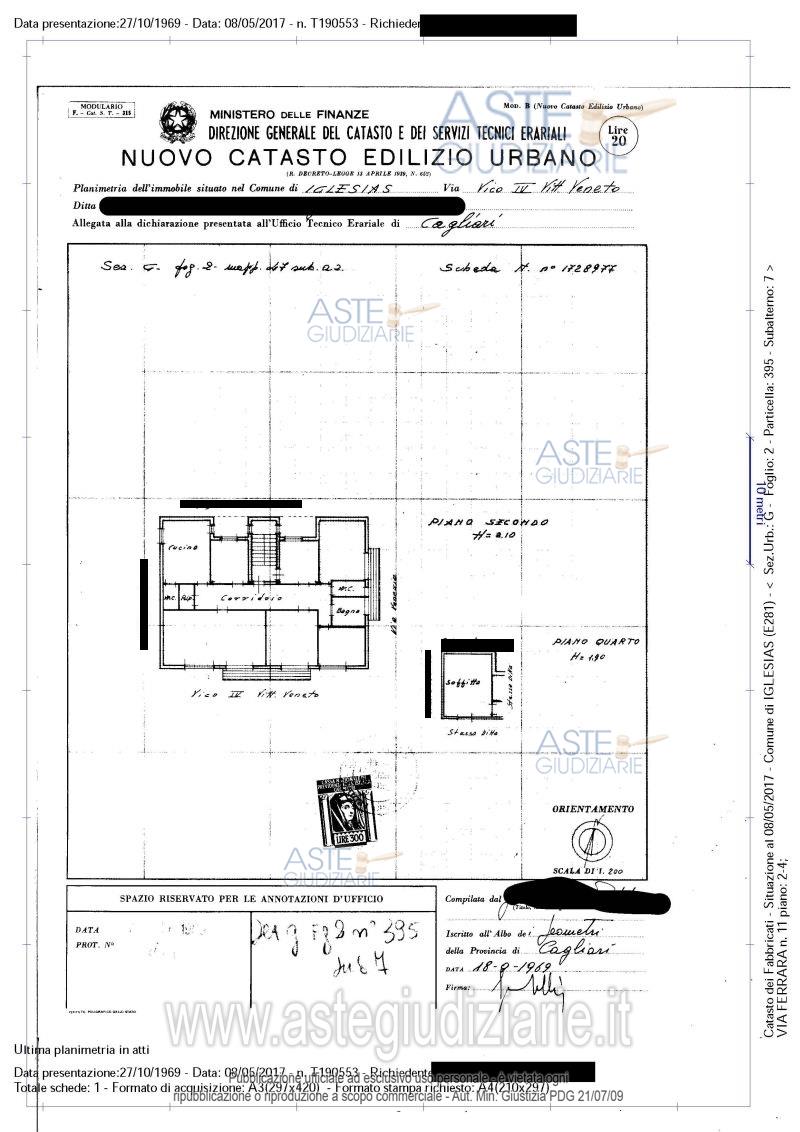 Appartamento al piano secondo con ingressi particolari al piano (due ingressi, alla sinistra e in fronte per chi giunge al piano), con locale sottotetto pertinenziale al piano quarto sottotetto, con porta di ingresso alla desta per chi giunge al pianerottolo condominiale. L' immobile è composto da sette vani, servizi e ripostiglio al piano secondo con annessa soffitta al piano quarto. APE classe G.