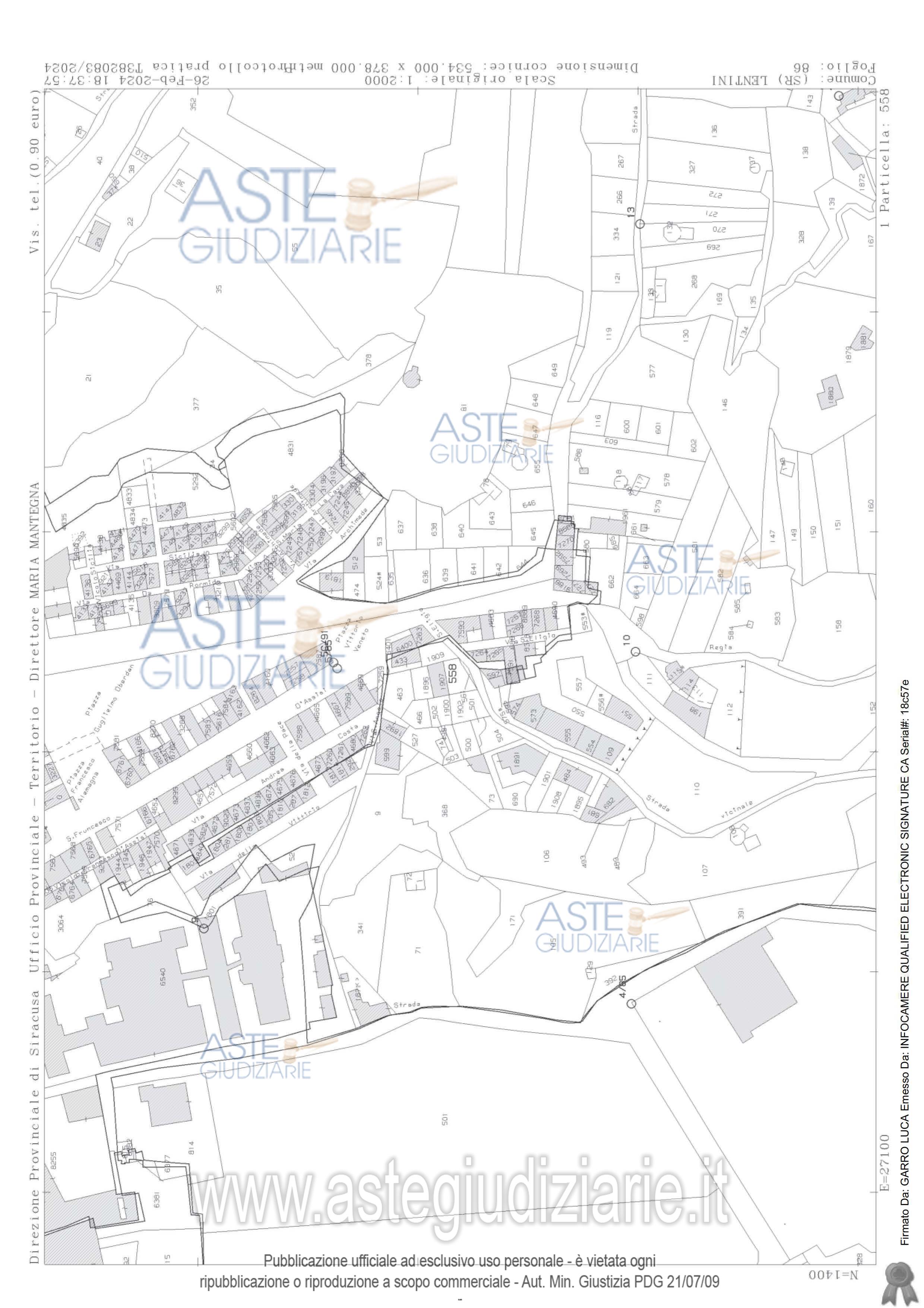 Garage sito in Lentini (SR), via Enrico Toti n. 16, piano terra, riportato al Catasto dei Fabbricati del predetto Comune, al foglio 86, particella 558, sub 5 (ex foglio 93, particella 1892, sub 5), cat. C/6, cl. 3, mq 26, rendita catastale € 51,03.