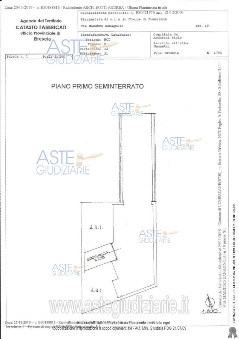 La presente scheda di vendita riporta integralmente informazioni e documenti pervenuti ufficialmente dal Ministero e dal professionista incaricato.