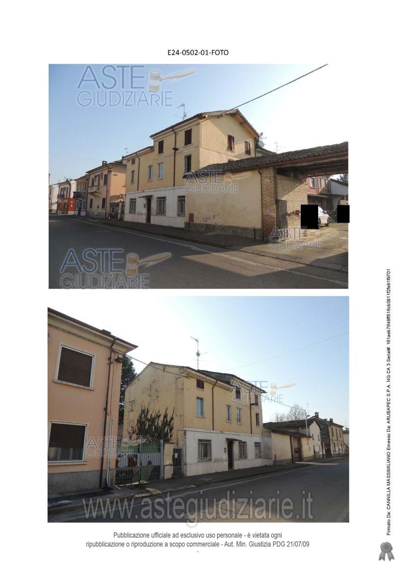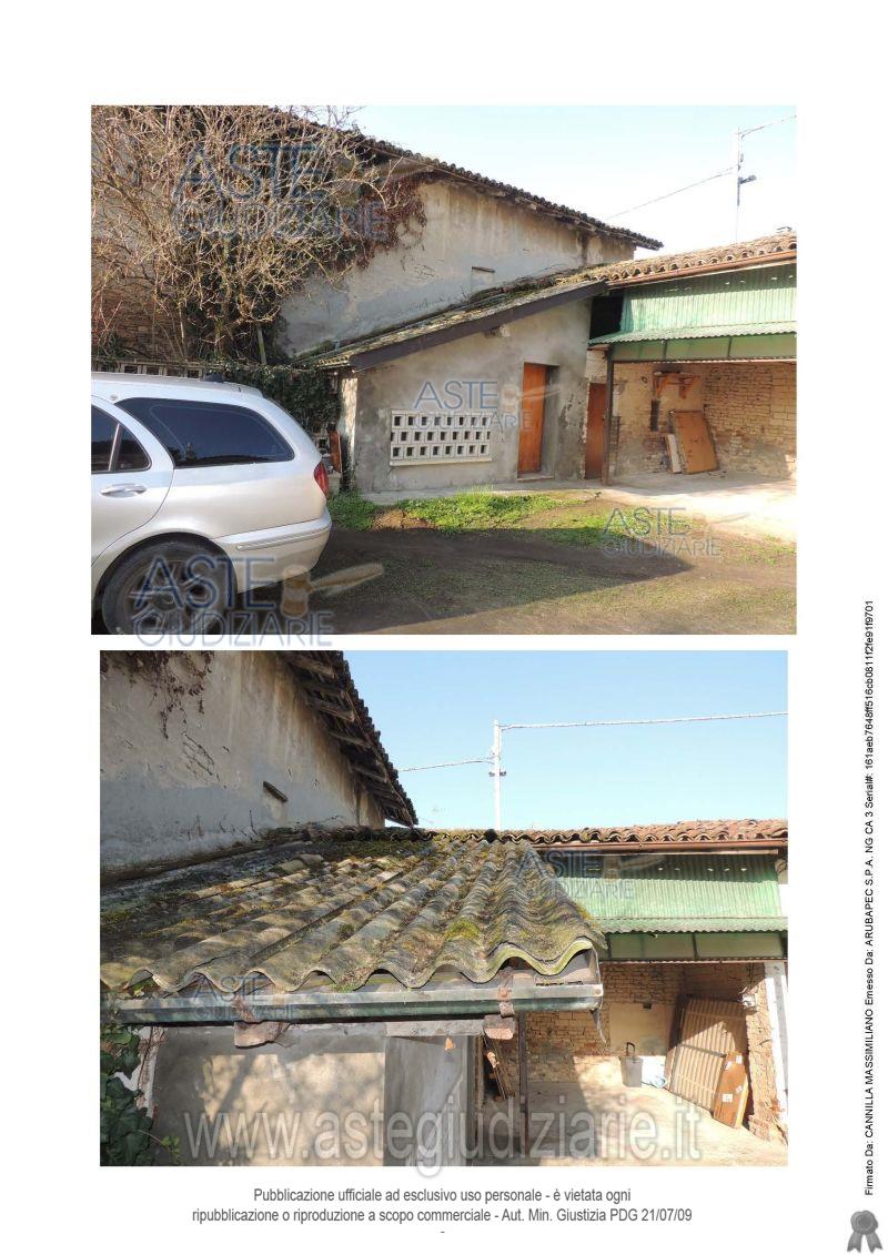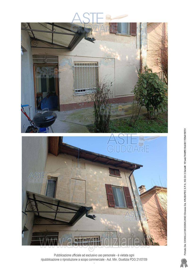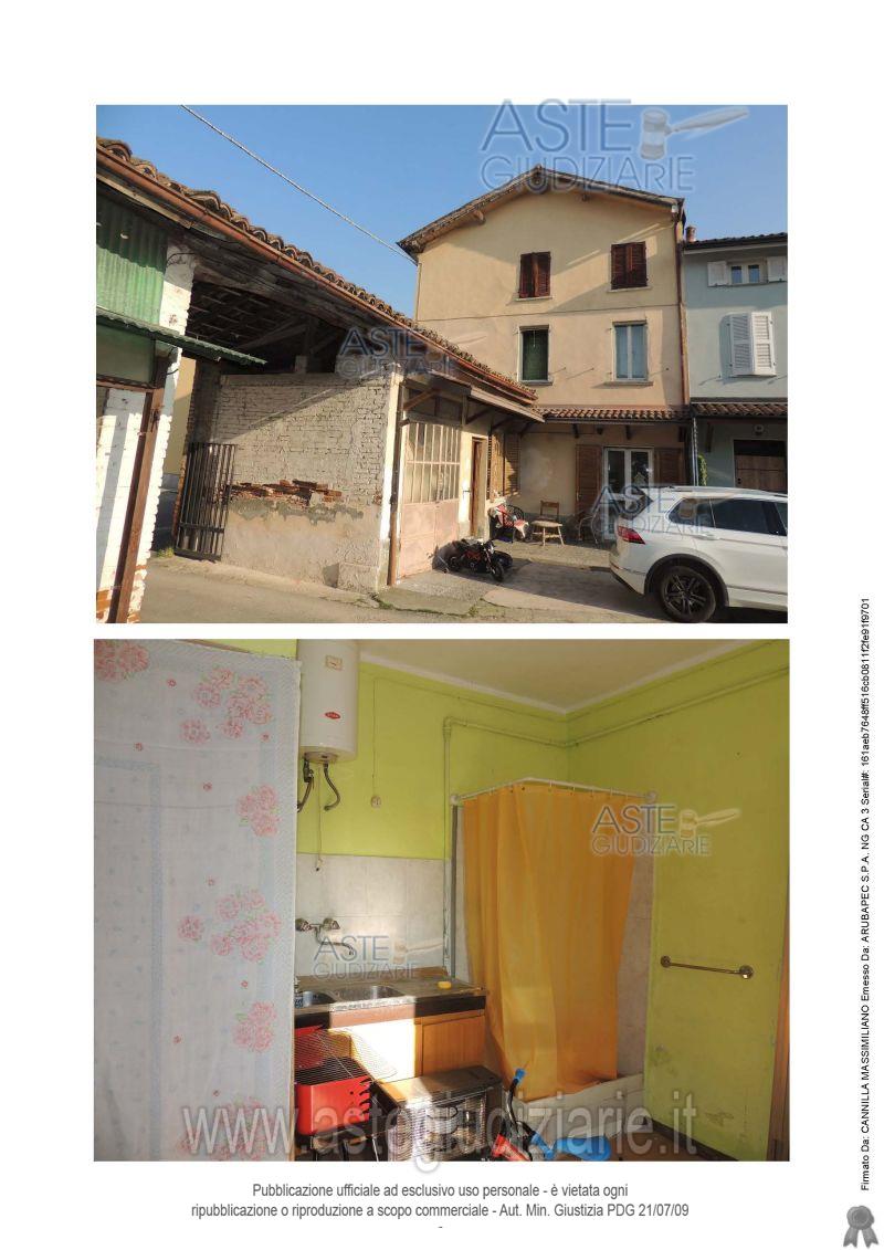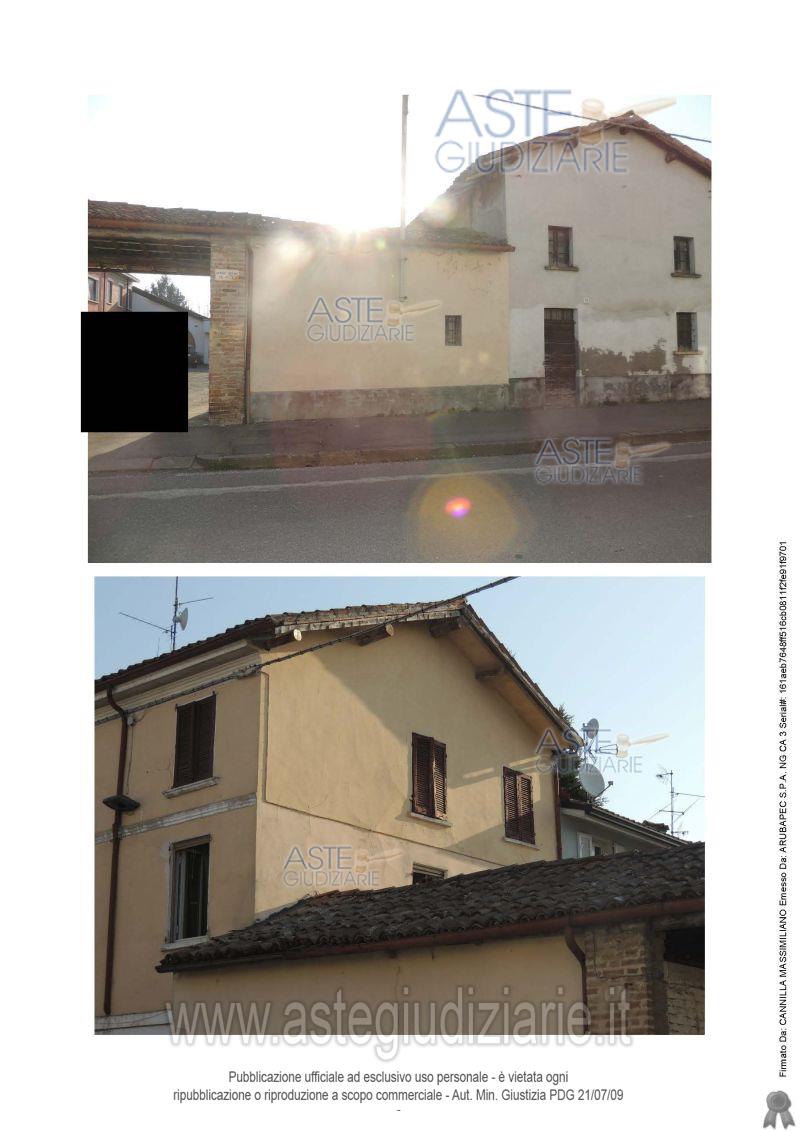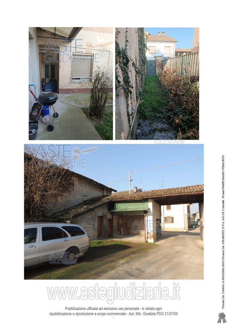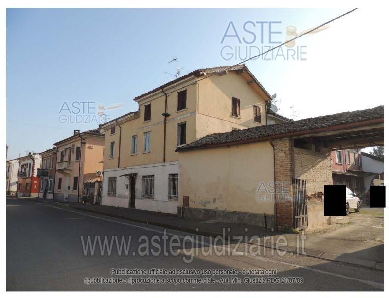 Porzione di fabbricato costituito da abitazione e accessori in contesto di corte con accesso pedonale e carraio fronte strada e dalla corte comune. Piano terreno: pranzo, cucina, disimpegno, soggiorno, ripostiglio con servizio, locale di sgombero con accesso dall’esterno. In corpo di fabbrica staccato vano ripostiglio e vani a cantina. Piano primo: accesso con scala interna, disimpegno, bagno, due camere, ripostiglio. Piano sottotetto: accesso con scala interna, vani di sgombero-ripostiglio. Quota di 4/12 sul cortile pertinenziale comune.