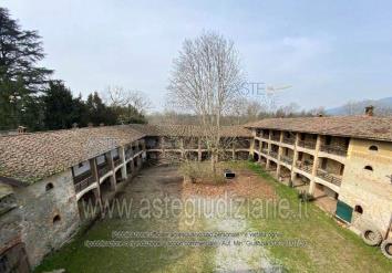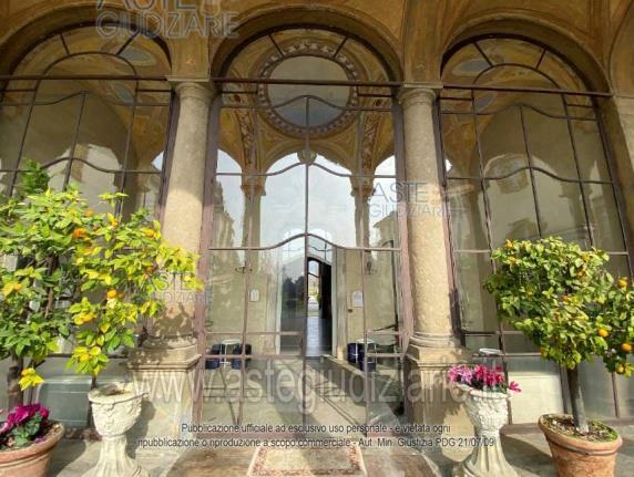 - tre fabbricati posti a confine con l'ala ovest della villa settecentesca, di tre piani fuori terra quello a nord e di due piani fuori terra quelli a sud e a ovest, costituenti una corte agricola con portici al piano terreno e loggiati ai piani superiori
