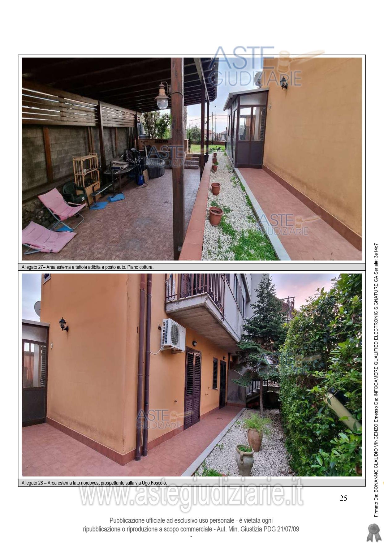 villino al piano terra, con annessa area esterna e garage di pertinenza esclusiva posto al piano interrato Le due unità fanno parte di un edificio condominiale (edificio “C”) di tre piani fuori terra ed uno entro terra. L’abitazione confina a sudest con area di proprietà del Comune di Mascalucia, a sudovest e a nordest con altre unità immobiliari e relative aree di pertinenza, a nordovest in parte con area del corpo scala esterno comune ed in parte con la via Ugo Foscolo. Il garage confina a sudest e a nordest con terrapieno, a nordovest con corsia di manovra condominiale e a sudovest con altro garage.
