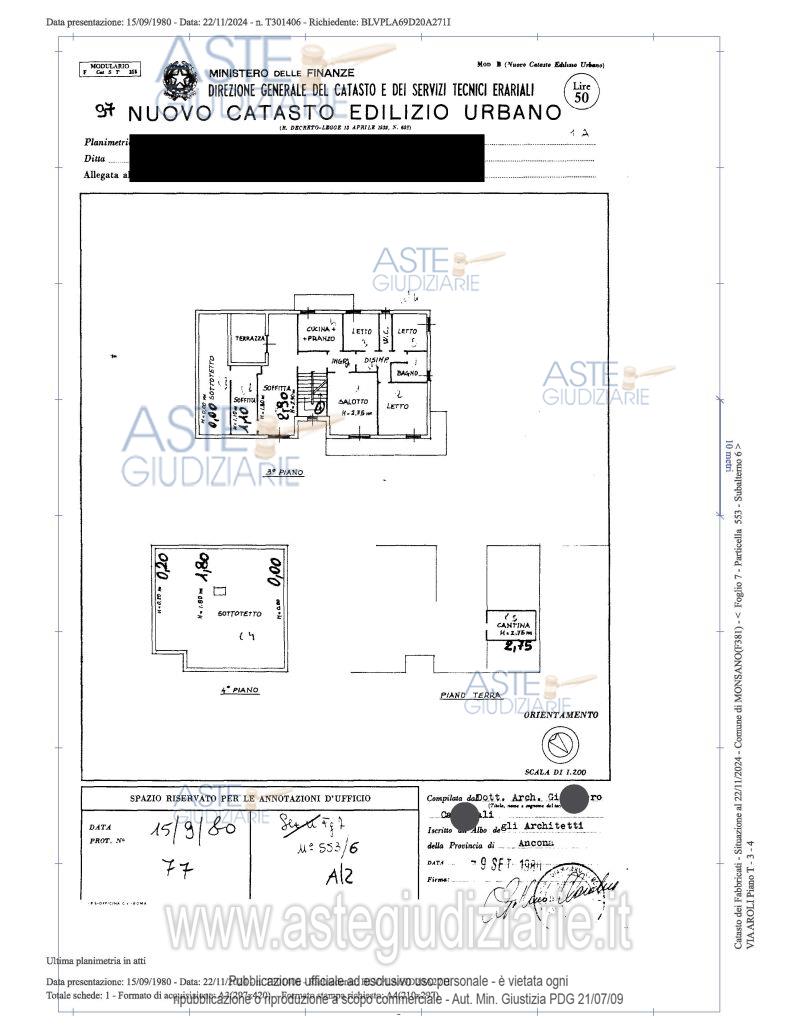 Bene N° 3 - Appartamento ubicato a Monsano DESCRIZIONE: (AN) - Via Aroli 1/A, ora via Martiri della Resistenza n. 10, piano T 3 4Bene N° 4 - Garage ubicato a Monsano (AN) - Via Aroli 1/A, ora via Martiri della Resistenza n.10, piano S1