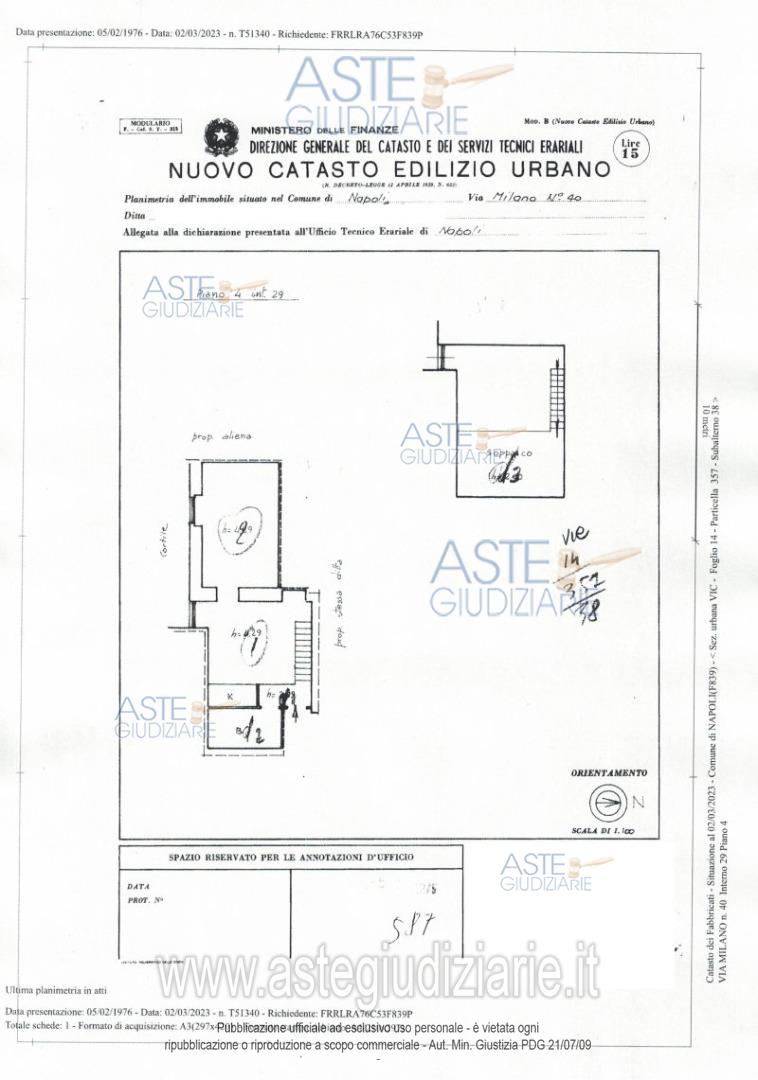 Piena ed intera proprietà della quota di 1/1 di appartamento sito in Napoli alla via Milano n.40 – piano quarto - int. 29 - circa 66,00 mq. Libero