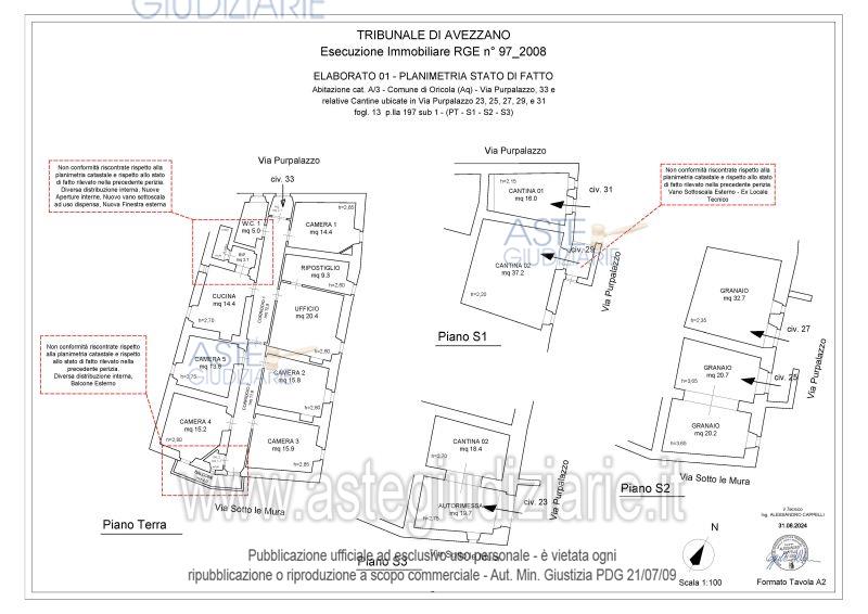 Appartamento ubicato in Oricola (AQ), Via Purpalazzo n.33, piano terra, consistenza 9,5 vani facente parte di un fabbricato di pregio storico risalente alla seconda metà del XVI secolo composto di due piani fuori terra a destinazione residenziale e due piani seminterrati con fondaci, magazzino e garage.