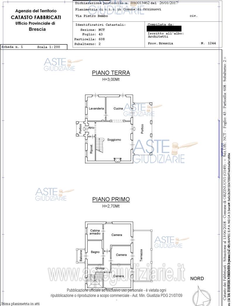 piena proprietà Complesso residenziale composto da due ville di due piani fuori terra il tutto censito al Catasto Fabbricati di detto Comune, Sez. NCT - Fg. 43 mapp. 608 sub 3 - P. T-1 - cat. A/8 - cl. 3 - vani 15 - R.C. Euro 2.672,66 mapp. 608 sub 4 - P. T-1 - cat. A/8 - cl. 1 – vani 8 - R.C. Euro 1.032,91 Oltre alle proporzionali quote sulle parti comuni