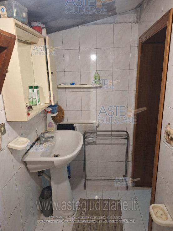 Unità abitativa compresa tra cielo e terra, con l’abitazione che si articola tra il piano primo esecondo con due locali sgombero al piano terra, sempre al piano terra è presente un portico con soprastante terrazzo a livello ad uso del piano primo e corte esclusiva; una scala esterna, aperta sui lati senza copertura e protezione da pioggia e altri agenti atmosferici, collega il piano terra, il primo e il secondo.L’abitazione è formata al primo piano da un vano cucina/pranzo dal quale, attraverso una porta finestra, si accede al terrazzo (di circa 17 mq.) e da una camera da letto con bagno; al piano superiore si trovano due camere, un bagno e un balcone.Al piano terra vi sono due locali sgombero non comunicanti tra loro, il primo con accesso da porta posta all’inizio della scala esterna, l’altro è accessibile attraverso una serranda in lamiera verniciata basculante.L’unità abitativa non è dotata di posto auto.