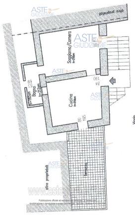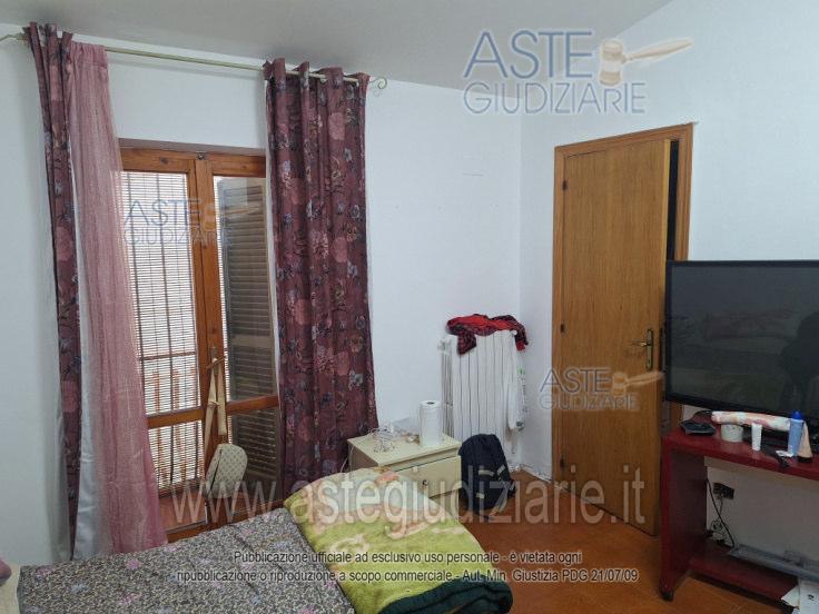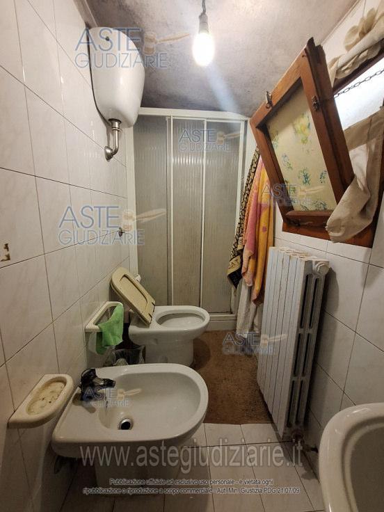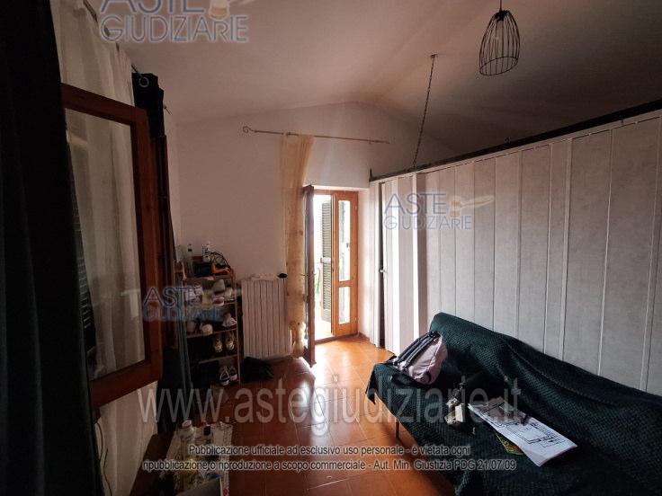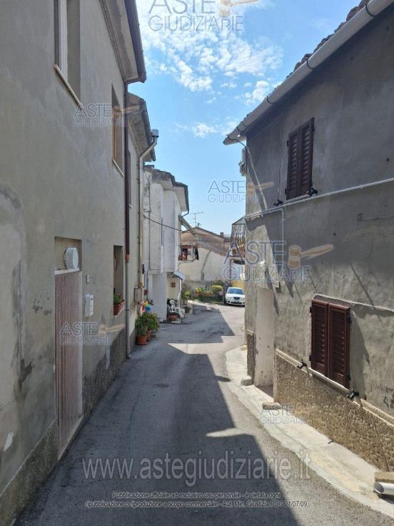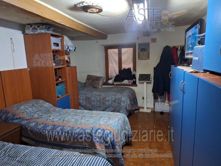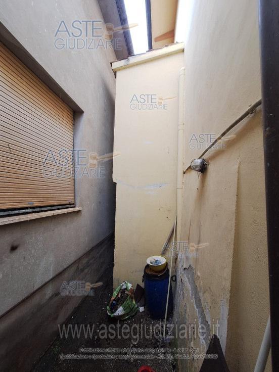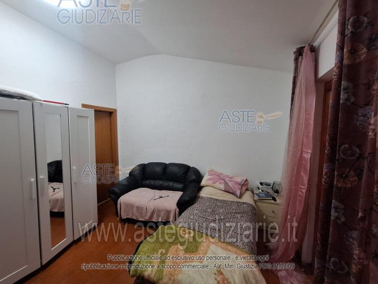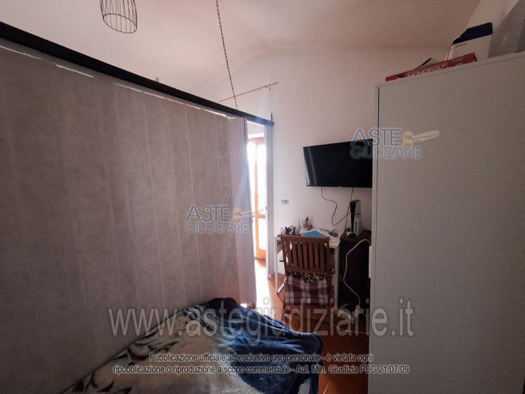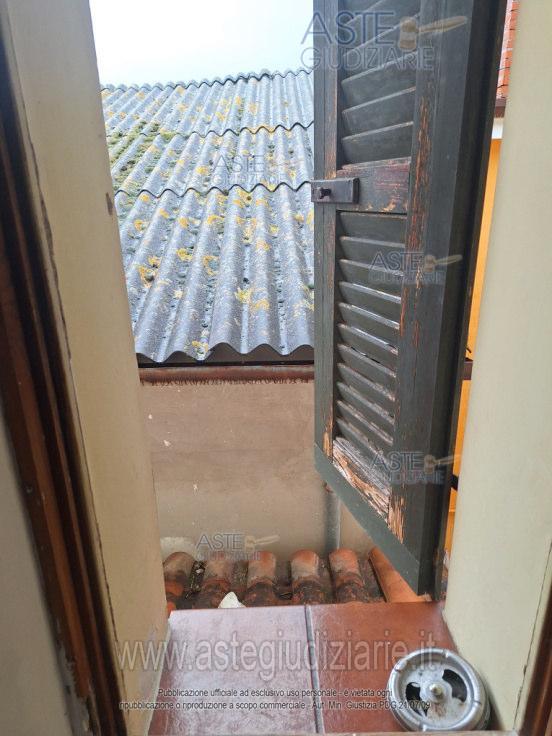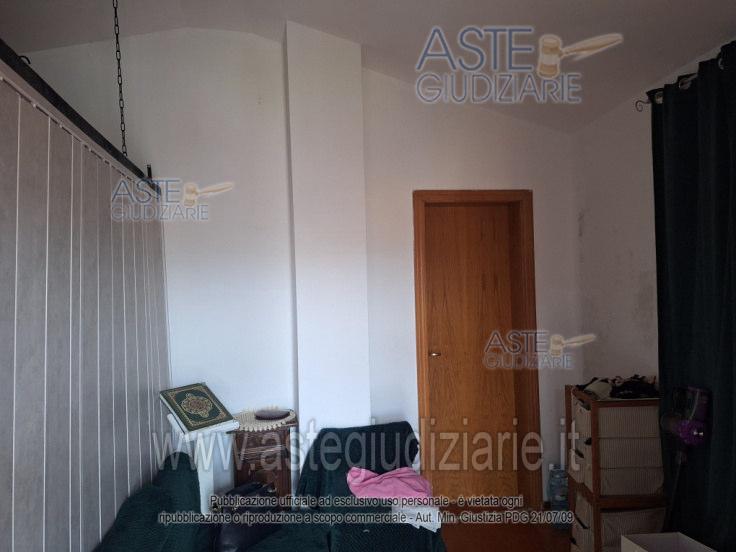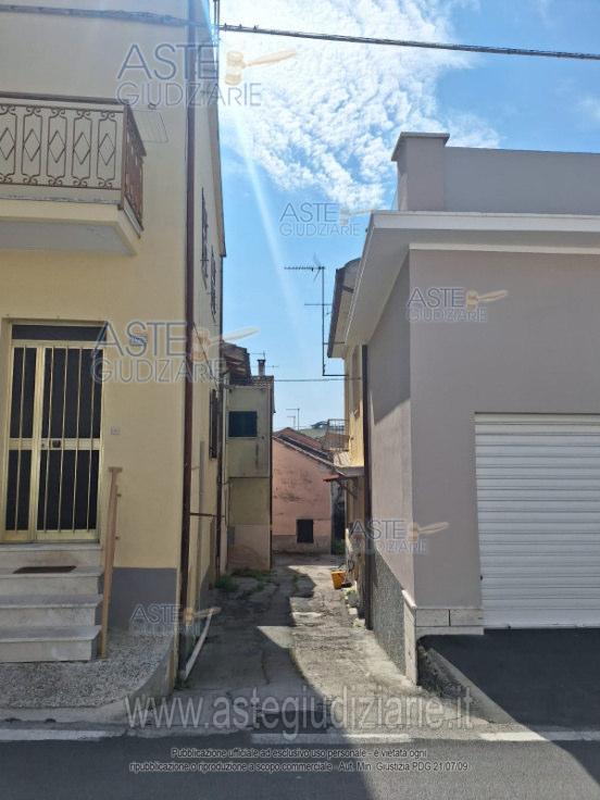 Unità abitativa compresa tra cielo e terra, con l’abitazione che si articola tra il piano primo esecondo con due locali sgombero al piano terra, sempre al piano terra è presente un portico con soprastante terrazzo a livello ad uso del piano primo e corte esclusiva; una scala esterna, aperta sui lati senza copertura e protezione da pioggia e altri agenti atmosferici, collega il piano terra, il primo e il secondo.L’abitazione è formata al primo piano da un vano cucina/pranzo dal quale, attraverso una porta finestra, si accede al terrazzo (di circa 17 mq.) e da una camera da letto con bagno; al piano superiore si trovano due camere, un bagno e un balcone.Al piano terra vi sono due locali sgombero non comunicanti tra loro, il primo con accesso da porta posta all’inizio della scala esterna, l’altro è accessibile attraverso una serranda in lamiera verniciata basculante.L’unità abitativa non è dotata di posto auto.