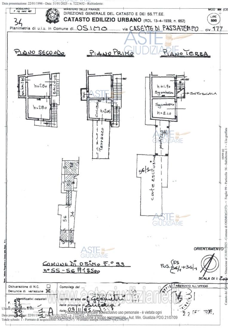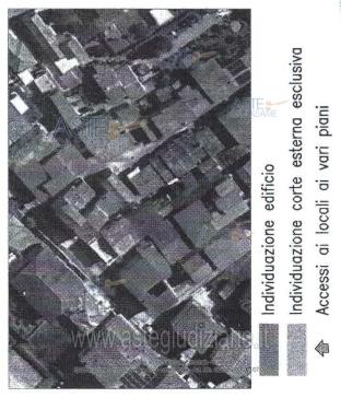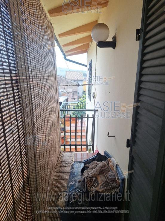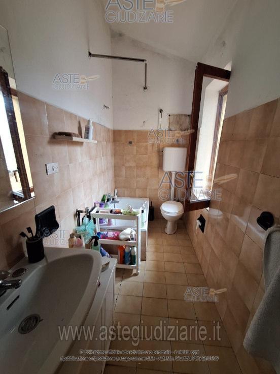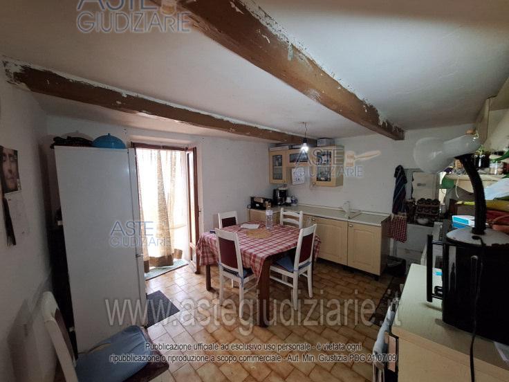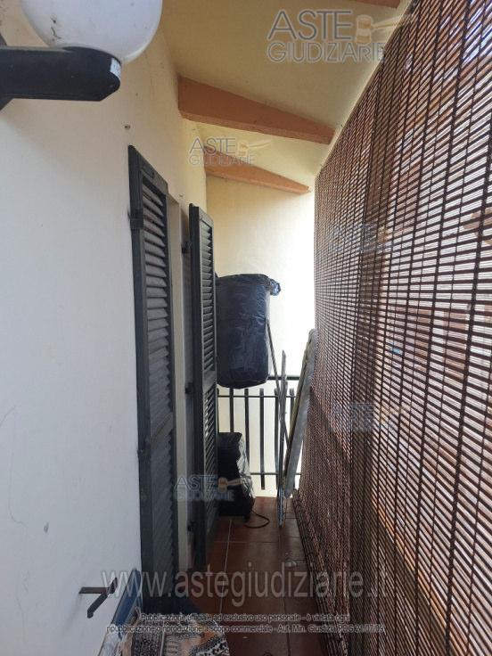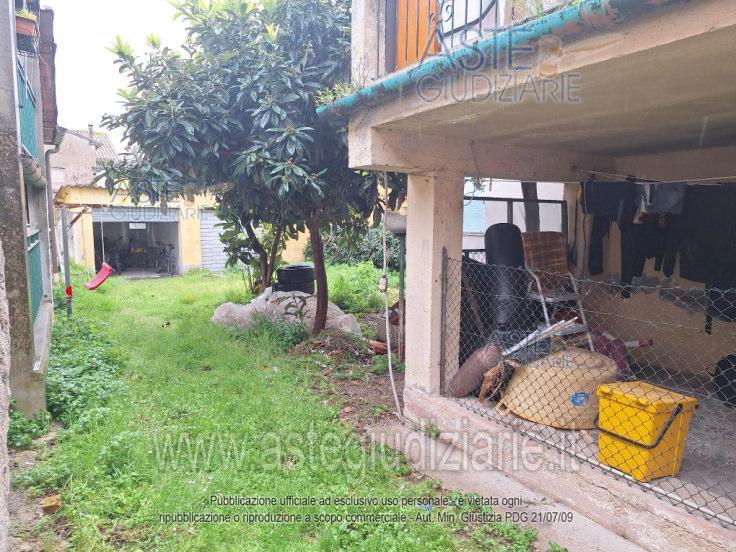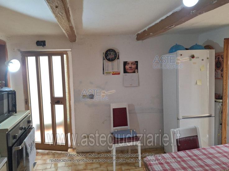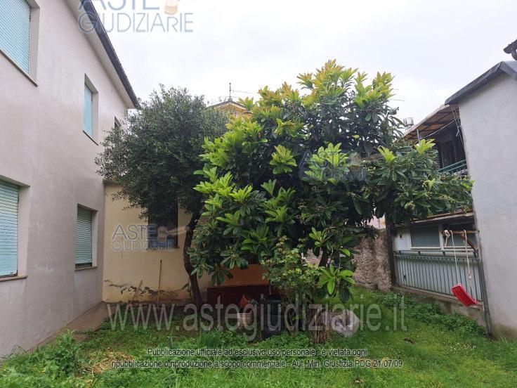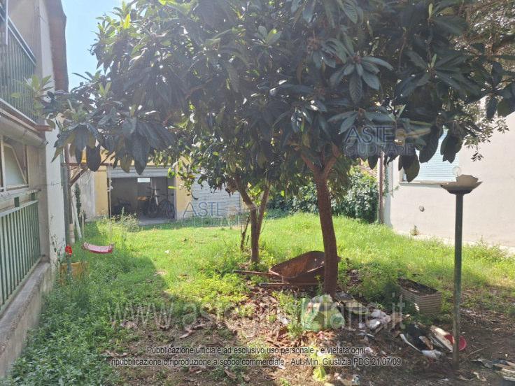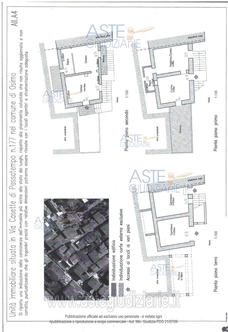 Unità abitativa compresa tra cielo e terra, con l’abitazione che si articola tra il piano primo esecondo con due locali sgombero al piano terra, sempre al piano terra è presente un portico con soprastante terrazzo a livello ad uso del piano primo e corte esclusiva; una scala esterna, aperta sui lati senza copertura e protezione da pioggia e altri agenti atmosferici, collega il piano terra, il primo e il secondo.L’abitazione è formata al primo piano da un vano cucina/pranzo dal quale, attraverso una porta finestra, si accede al terrazzo (di circa 17 mq.) e da una camera da letto con bagno; al piano superiore si trovano due camere, un bagno e un balcone.Al piano terra vi sono due locali sgombero non comunicanti tra loro, il primo con accesso da porta posta all’inizio della scala esterna, l’altro è accessibile attraverso una serranda in lamiera verniciata basculante.L’unità abitativa non è dotata di posto auto.