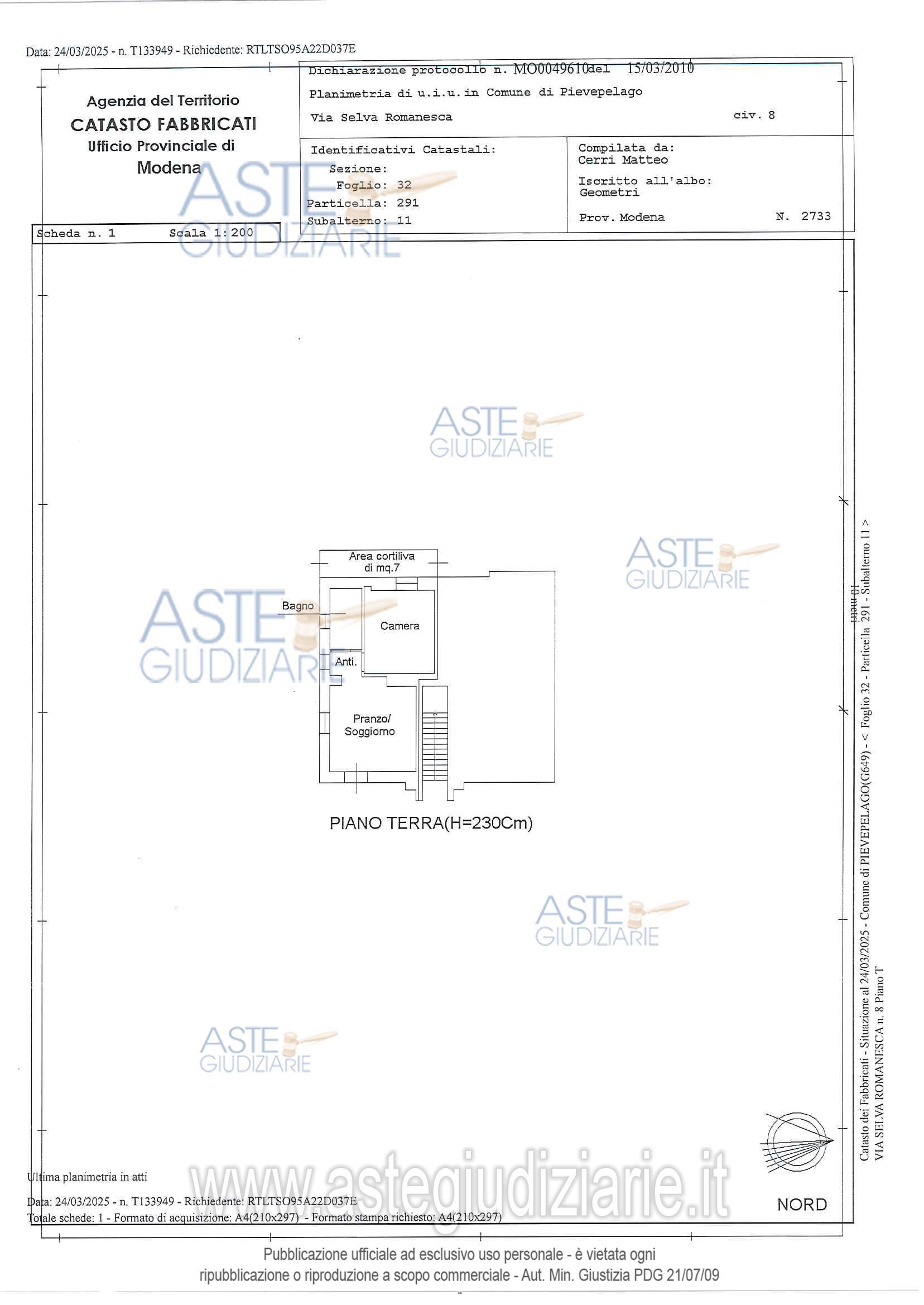 La presente scheda di vendita riporta integralmente informazioni e documenti pervenuti ufficialmente dal Ministero e dal professionista incaricato.