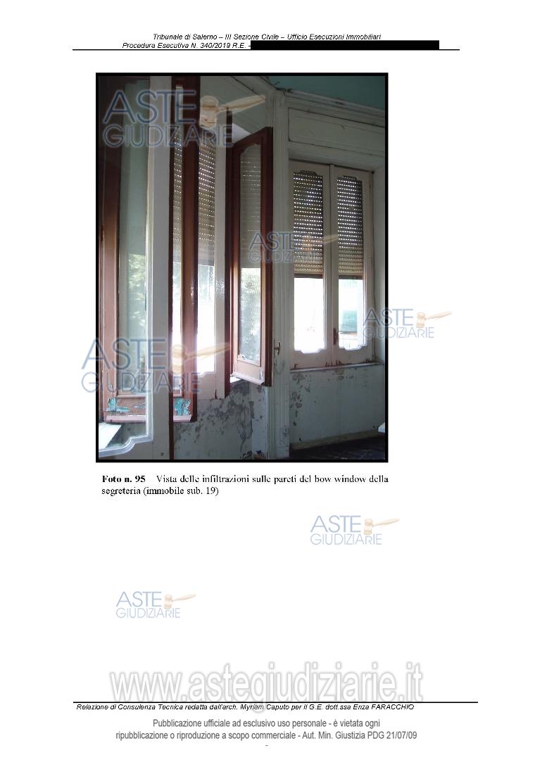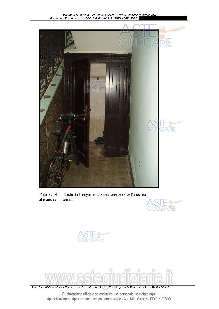 Quota 1/1– immobile ubicato al piano rialzato di un fabbricato risalente al primo trentennio del 1900 avente destinazione civile; l’accesso avviene sia dal marciapiede di via Mario Antonio Alfani al n. civico 4 e sia da una corte privata di altra proprietà accessibile sempre da via Mario Antonio Alfani civico n. 8 del Comune di Pontecagnano Faiano (SA). L’immobile presenta le seguenti pertinenze: n. 2 locali cantina e n. 1 locale soffitta ubicati rispettivamente al piano seminterrato e al piano sottotetto del medesimo fabbricato. Le rifiniture sono di qualità media. La consistenza dell’immobile è pari a 91,00 mq di S.R. netta e comprensiva delle pertinenze.