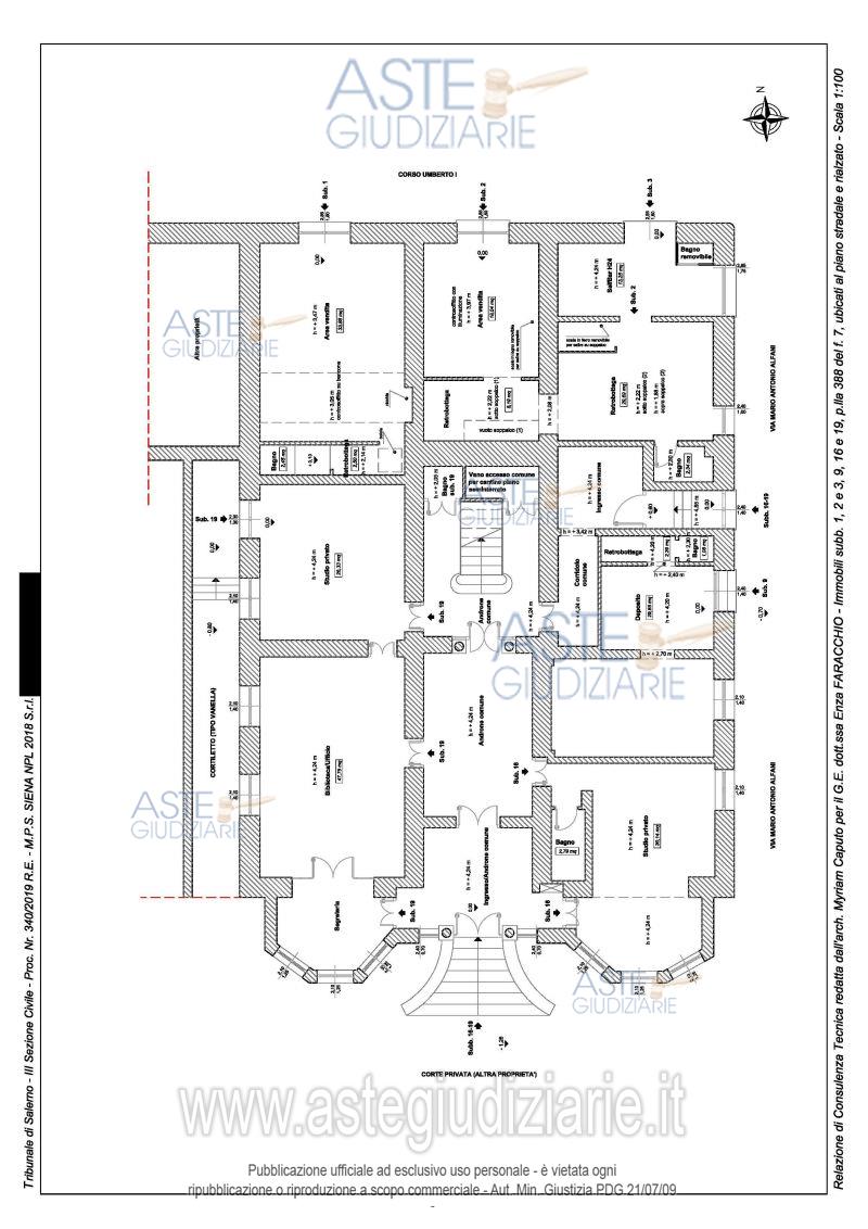 Quota 1/1– immobile ubicato al piano rialzato di un fabbricato risalente al primo trentennio del 1900 avente destinazione civile; l’accesso avviene sia dal marciapiede di via Mario Antonio Alfani al n. civico 4 e sia da una corte privata di altra proprietà accessibile sempre da via Mario Antonio Alfani civico n. 8 del Comune di Pontecagnano Faiano (SA).