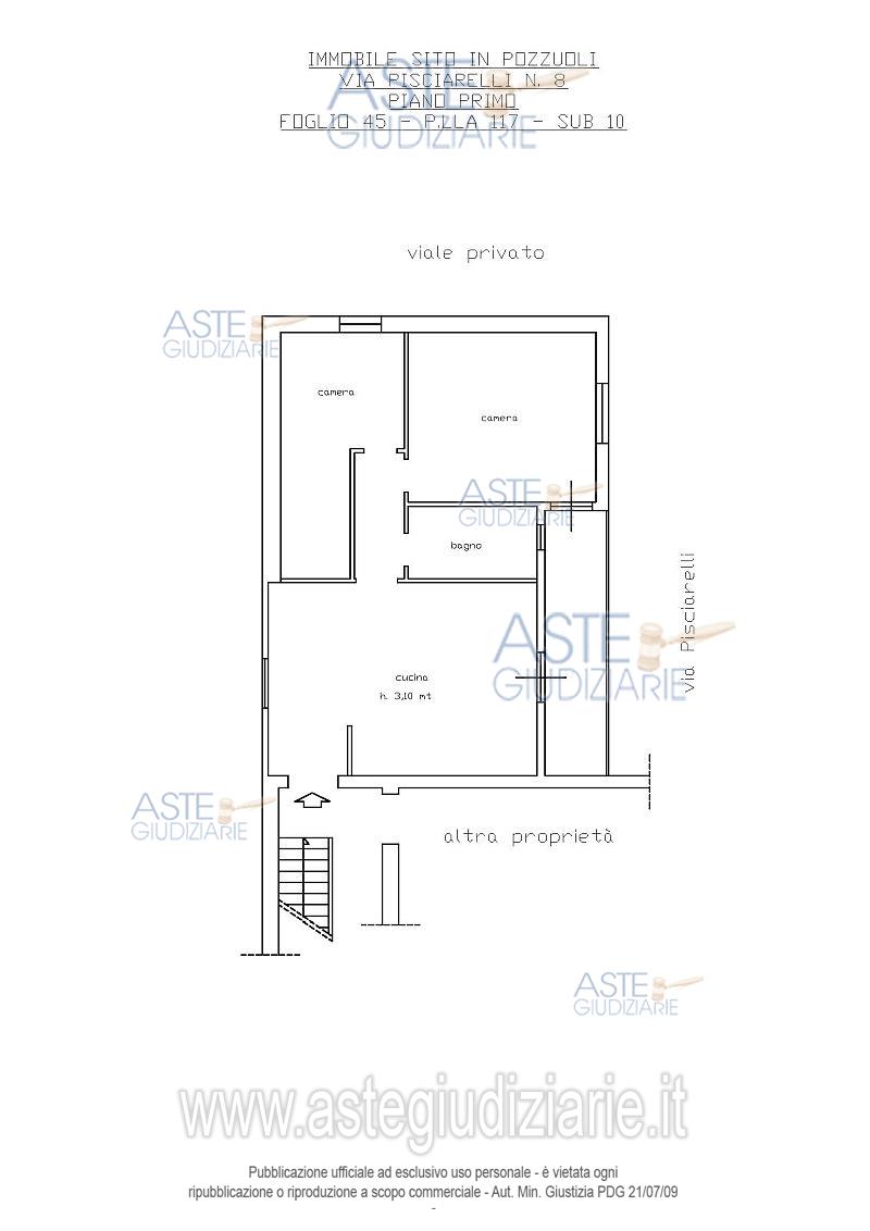 Piena ed intera proprietà di appartamento sito in Pozzuoli (NA) alla Via Pisciarelli n.8/A, piano primo, composto da salone con angolo cottura, corridoio, bagno e due camere.