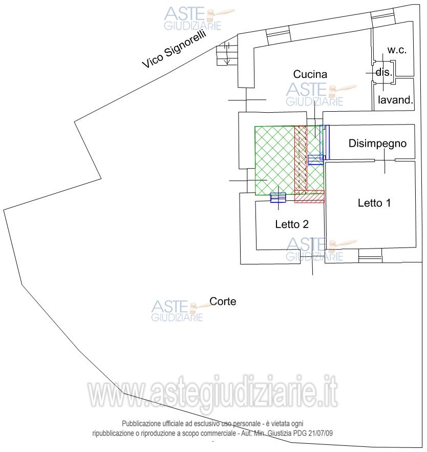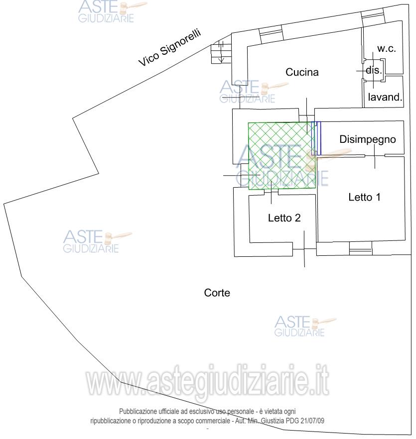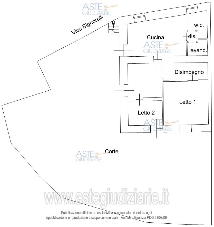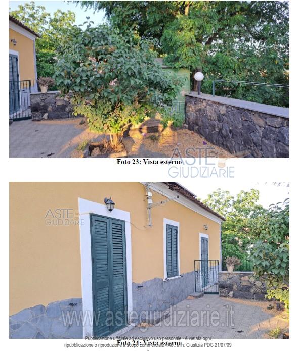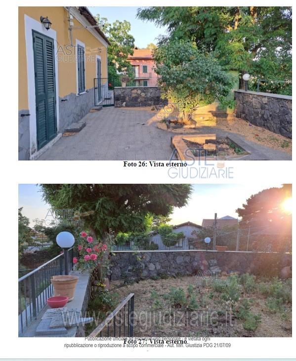 Diritto di piena proprietà su casa a piano terra in Ragalna (CT) - 95030- vico Signorelli, 9, composta di tre vani (di cui uno ricavato da un disimpegno) ed accessori (cucina abitabile, bagno, lavanderia e disimpegni), della superficie commerciale di metri quadri 109, con annessa corte con terrazzamenti, in parte pavimentata e in parte lasciata a terreno, della superficie di metri quadri 226