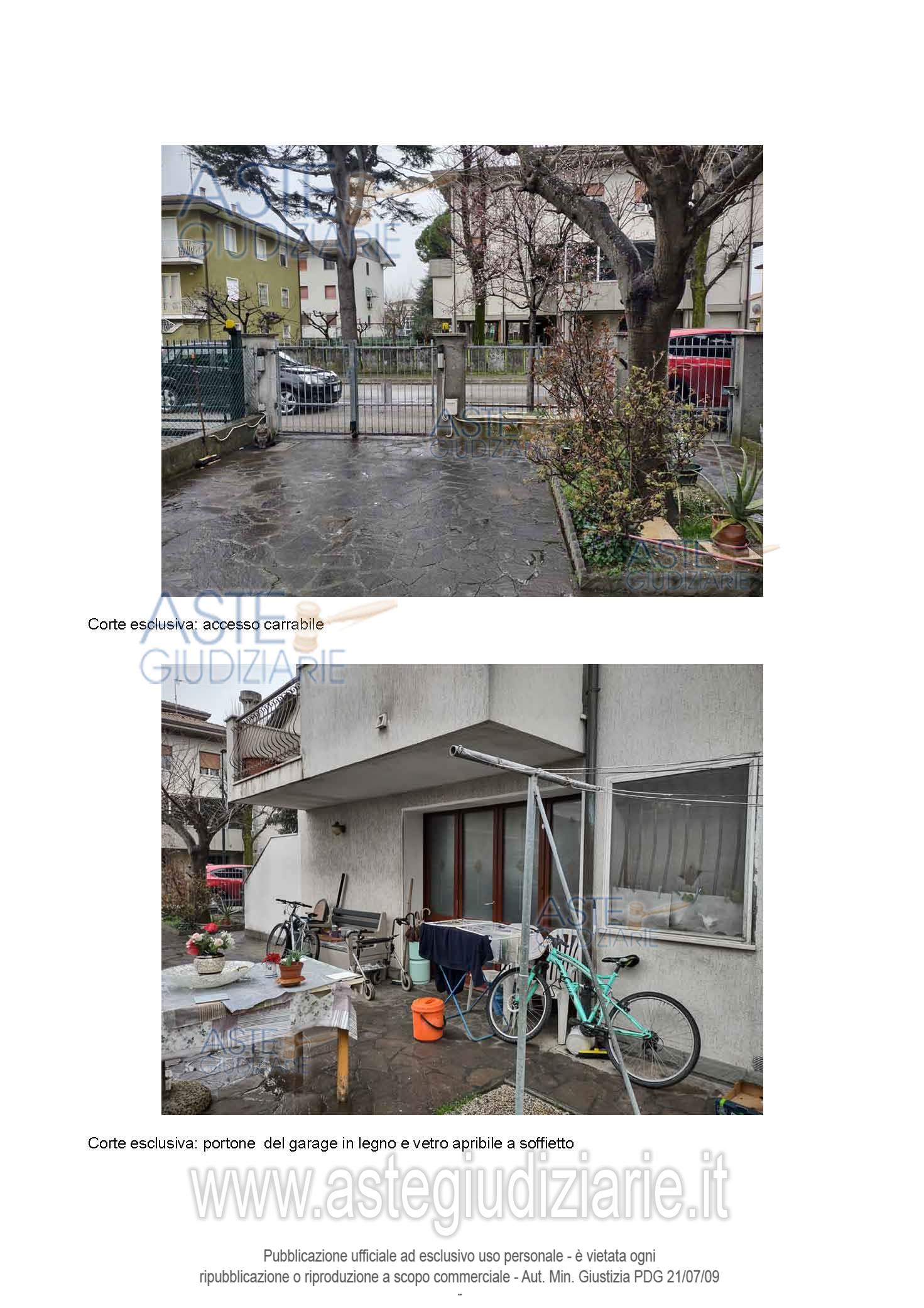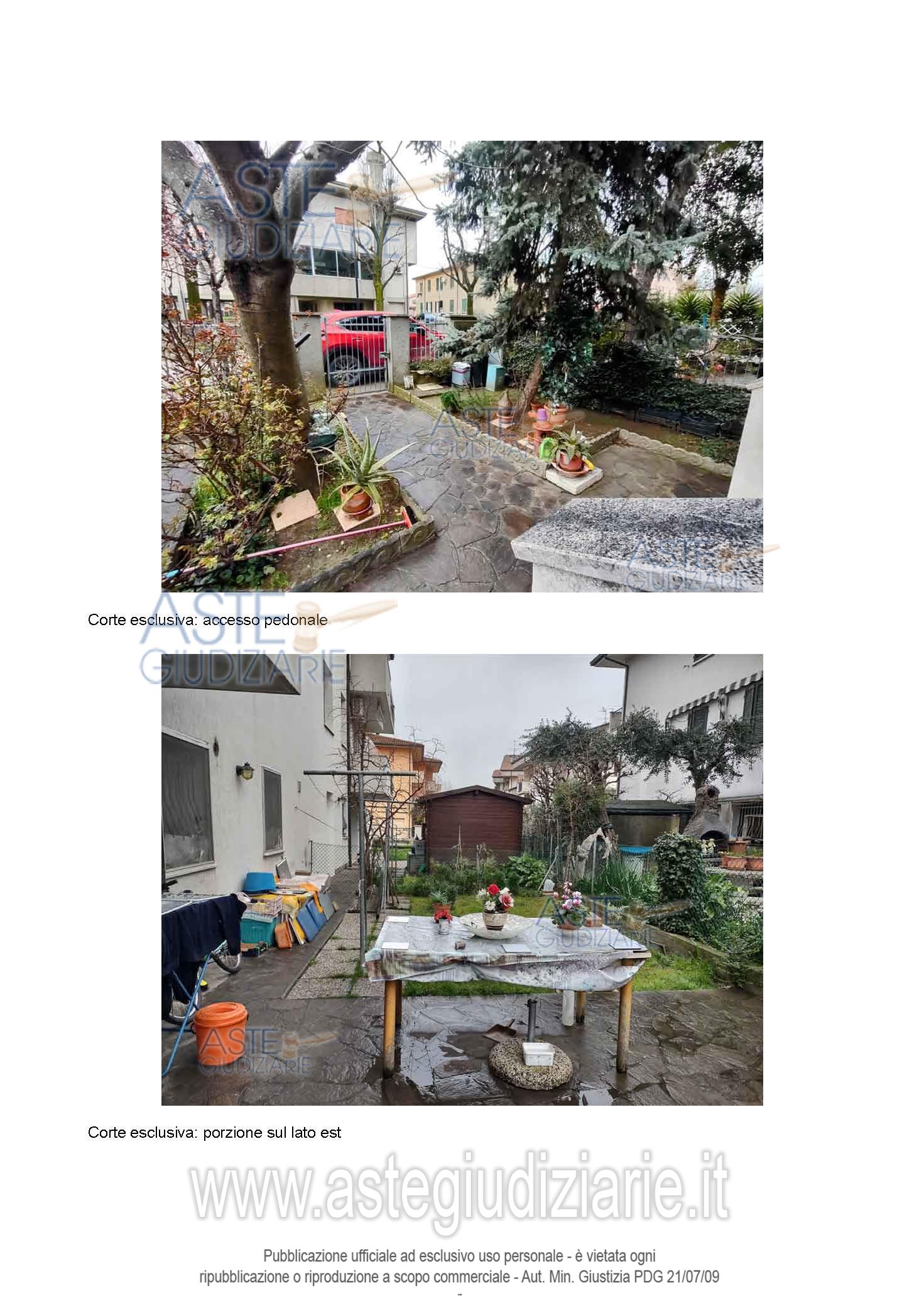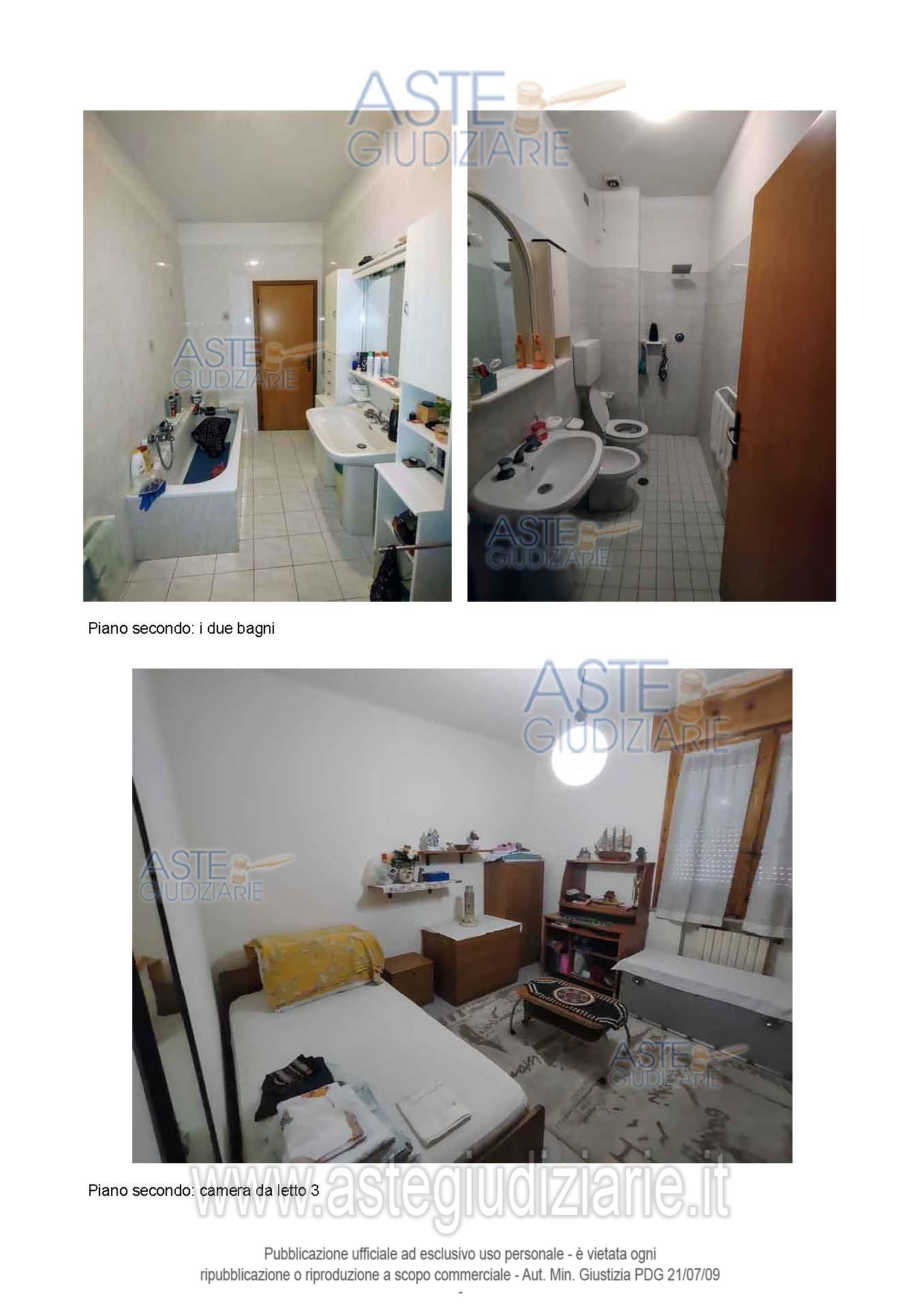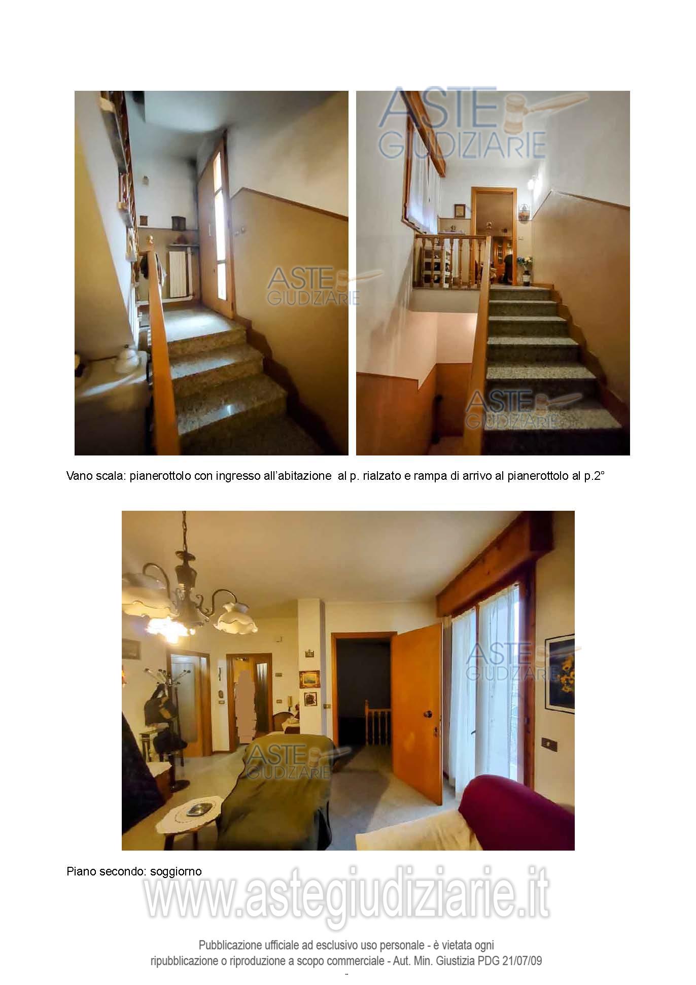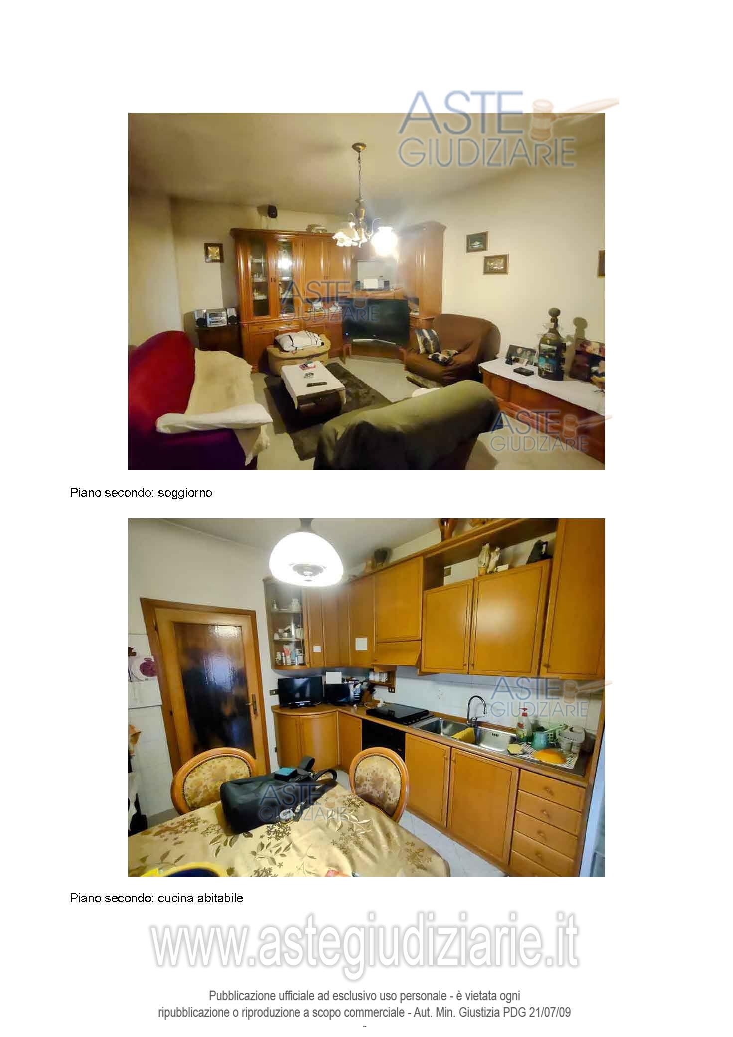 appartamento al piano secondo composto da soggiorno, cucina, corridoio/disimpegno, tre camere da letto, due bagni, due balconi, oltre a garage, bagno, cantina e corte esclusiva al piano terra, nonché a scala interna ad uso esclusivo, per la superficie commerciale di ca. 219,28 mq.”;o stato: occupato dalla parte esecutata; classe energetica “F”